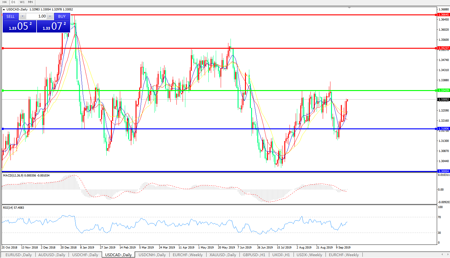 美元兑加元USDCAD    日线
