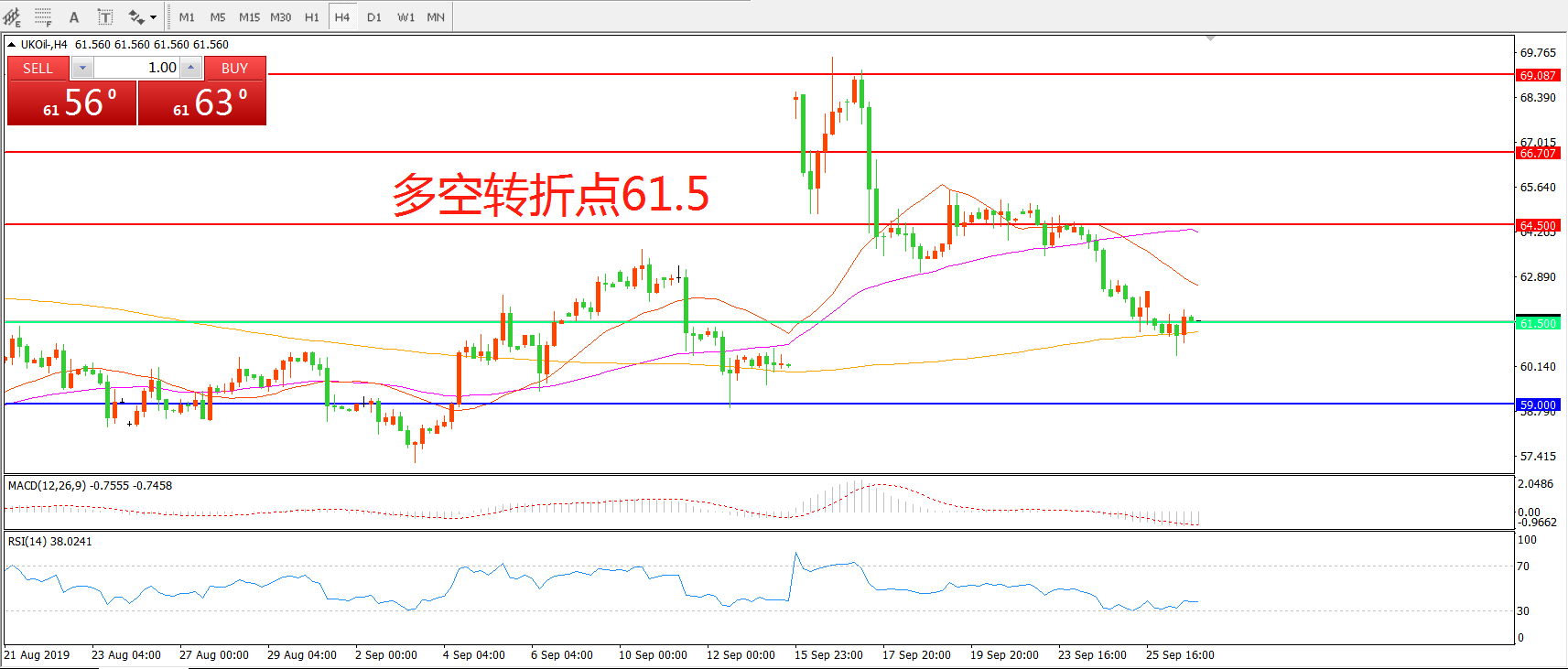 本周油价持续走弱,因在遭遇了有史以来最大规模的石油设施攻击后,沙特恢复产量的速度比自我设定的最后期限提前了大约一周,不过市场对沙特的产量恢复持怀疑态度,因此油市走向仍存疑。周四(9月26日),布伦特原油收跌0.6%,报61.56美元/桶。