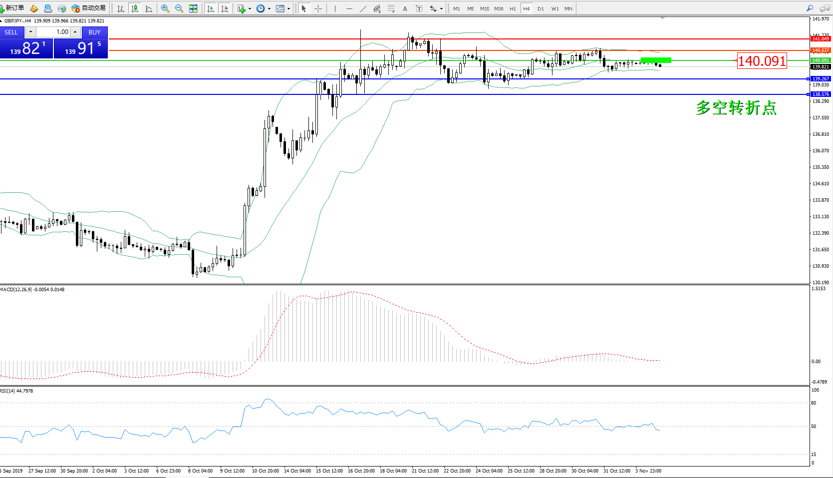 交易策略:140.091下方看跌,目标139.267138.576