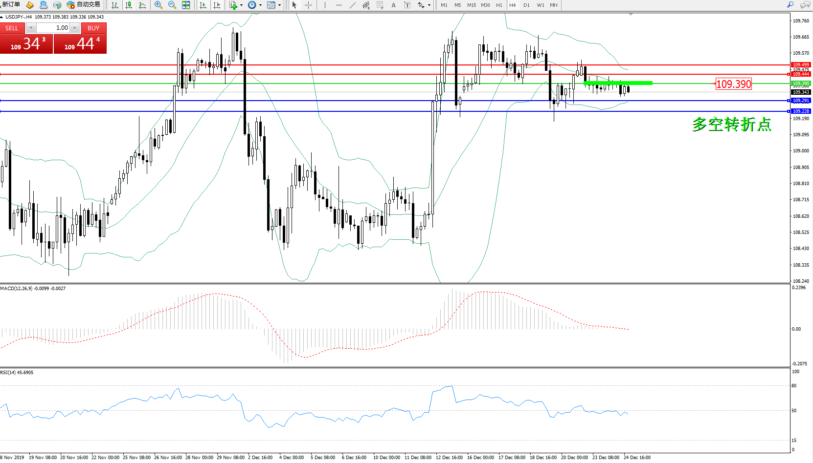美元兑日元现报109.38,美元兑日元跌至盘中低点,之前发布的美国经济数据表现疲软,并且5年期美国国债拍卖获得强劲需求之后国债收益率下降。日本央行10月货币政策会议纪要显示,多数成员一致认为,海外经济下行风险依然显著,必须继续密切关注通胀动能丧失的可能性。其中几名日本央行成员表示,央行必须与政府密切合作,以应对下一次经济下滑。