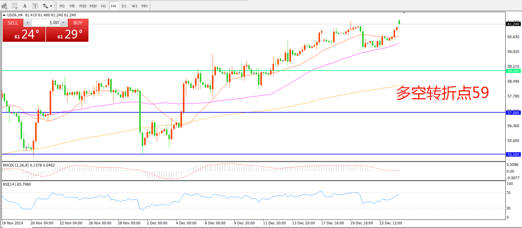交易策略:在59.00 之上看涨,目标62.00       65.00