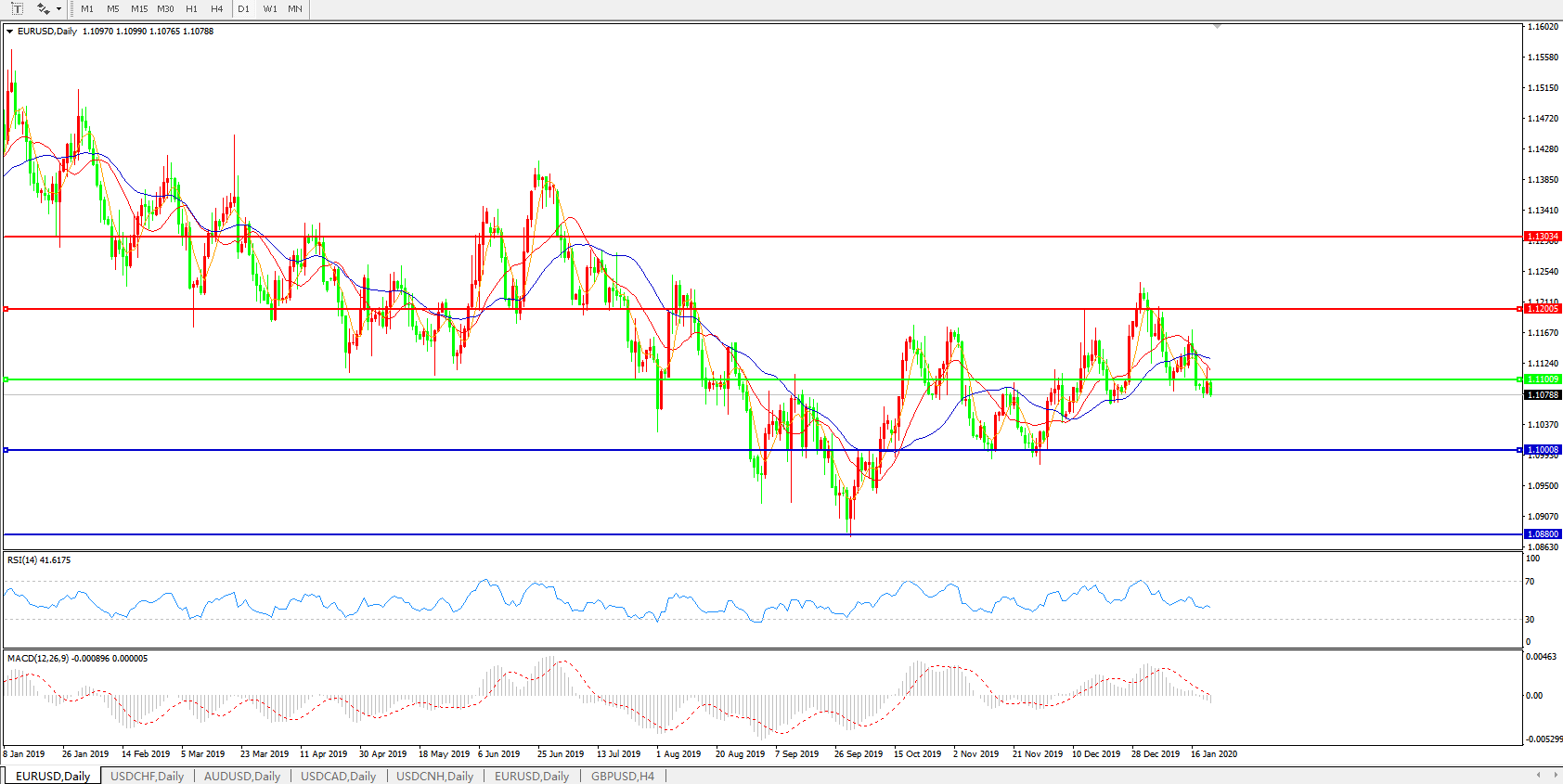 交易策略:1.1100下方看跌,目标1.1000、1.0880