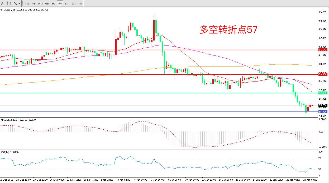 交易策略:在57.00之下看跌,目标55.00 52.00