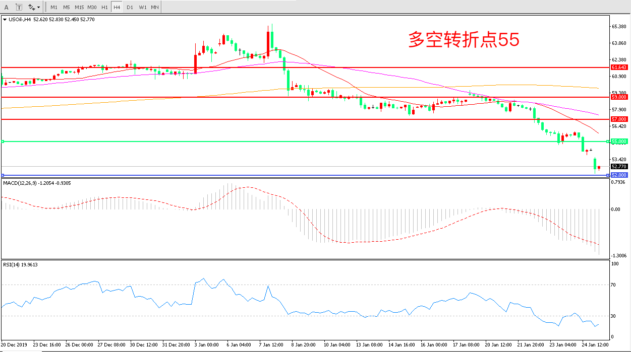 因为亚洲疫病持续蔓延,中国多个城市采用封城措施,出行需求受限,油价受到重挫。周一美国WTI原油跳空低开,跌幅快速扩大至逾3%,最低报52.15美元/桶,截至发稿前收报52.61美元/桶。