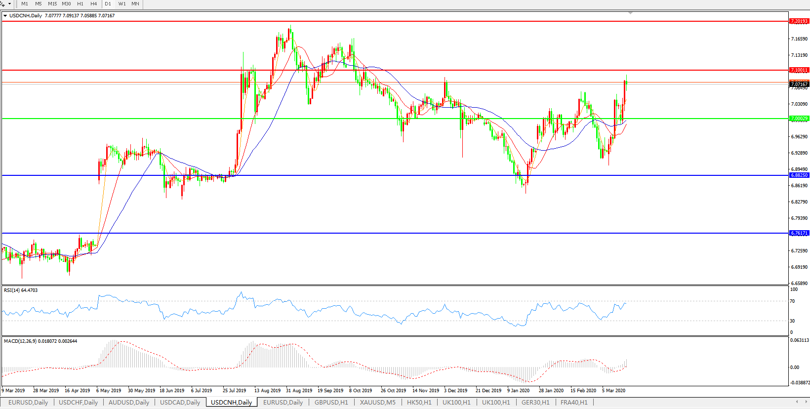 美元兑人民币USDCNH 日线图: