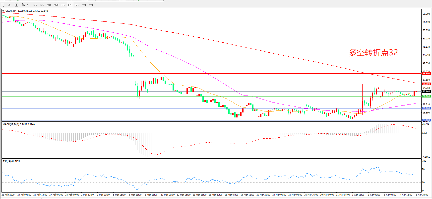 周三(4月8日),受 OPEC及其盟友可能达成减产协议的希望提振,布伦特原油尾盘走强,收报33.64美元/桶。美国能源信息署早些时候公布报告称,当周EIA原油库存增加1517.7万桶,高于预期,市场不跌反涨,因为市场认为创记录的库存增长可能会增加周四OPEC减产的概率。