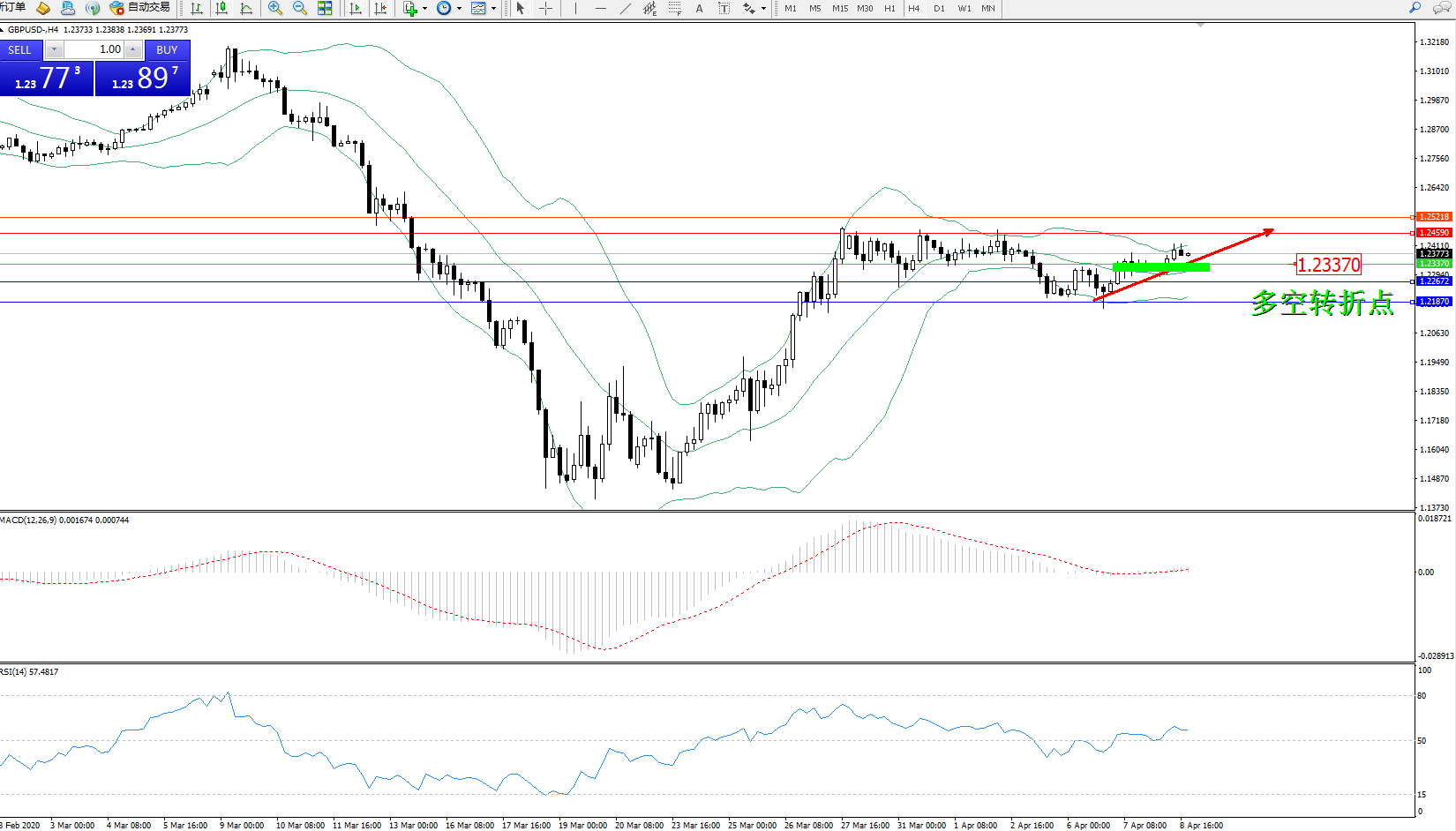 交易策略:1.23370上方看涨,目标1.24590、1.25218