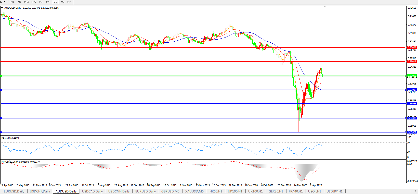 交易策略:0.6300下方看跌,目标0.6100、0.5900