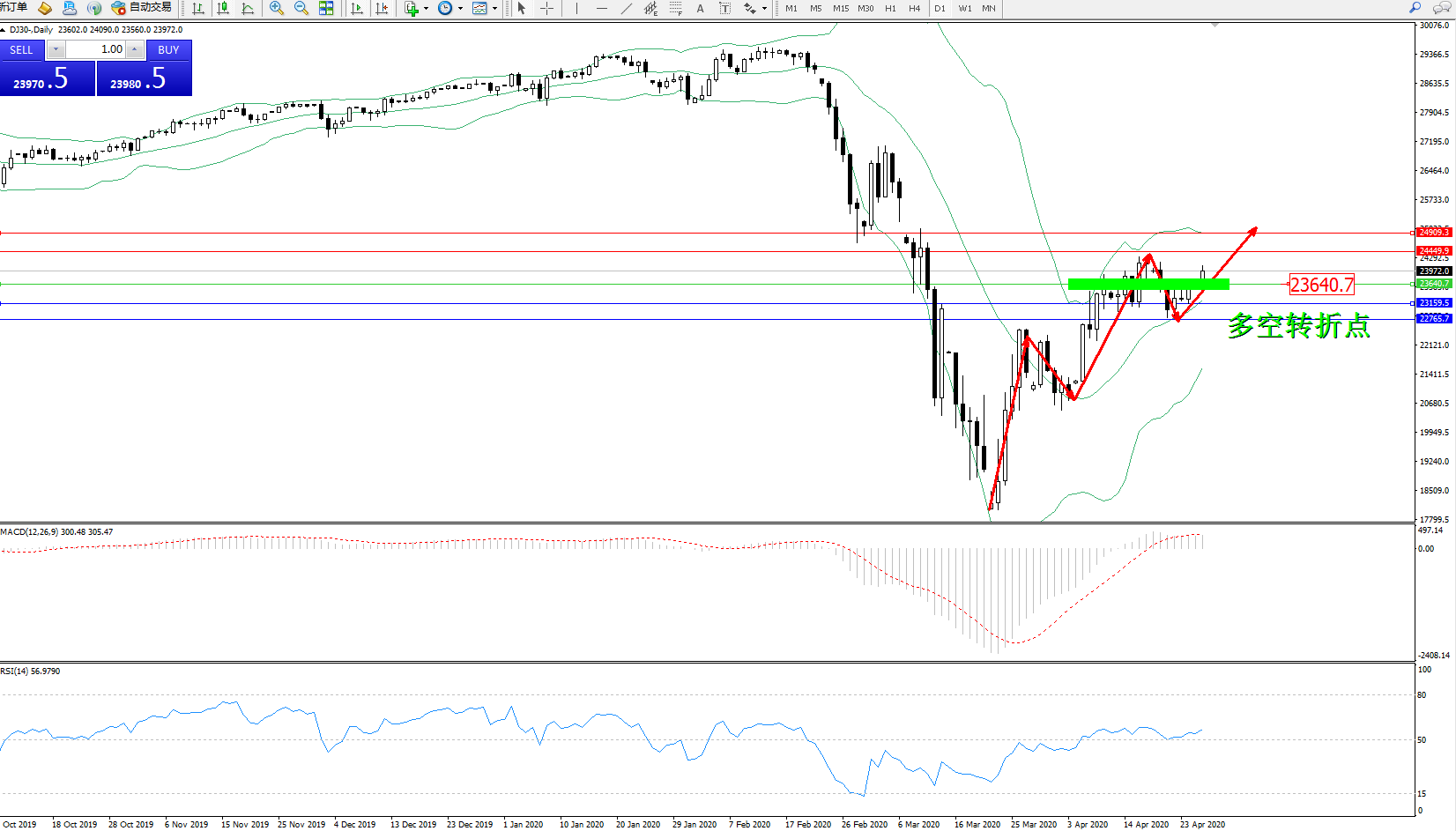 道琼斯指数4月27日(周一)收盘上涨358.50点,涨幅1.51%,报24133.78点。美国股市收高,主要经济体计划逐步放松防疫限制措施,市场初露曙光,这可能表明投资者对走出困境更有信心。美债收益率上升,且许多国家计划放松新冠疫情相关封锁措施推动了投资者对风险较高资产的兴趣,交易商也开始关注月末资金流动,随着本周的进行,月末资金流的重要性可能会增加。美国股市本月迄今上涨了10%。美国德克萨斯州州长Abbott:德州“居家令”将于4月30日到期,不再更新。德州第一阶段重启计划将从本周五(5月1日)开始。 所有餐厅、商场和商店都将于周五重新开业。 出于安全考虑,这些场所的占用率将限制在25%以内。 博物馆和图书馆也将在本周五开始营业,占用率将限制在25%以内。