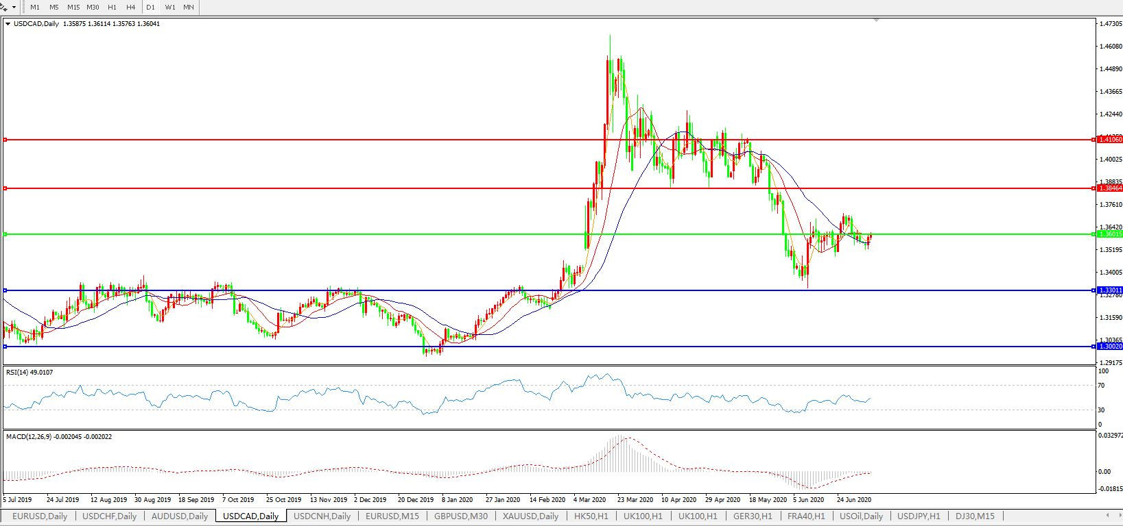 美元兑加元USDCAD 日线图: