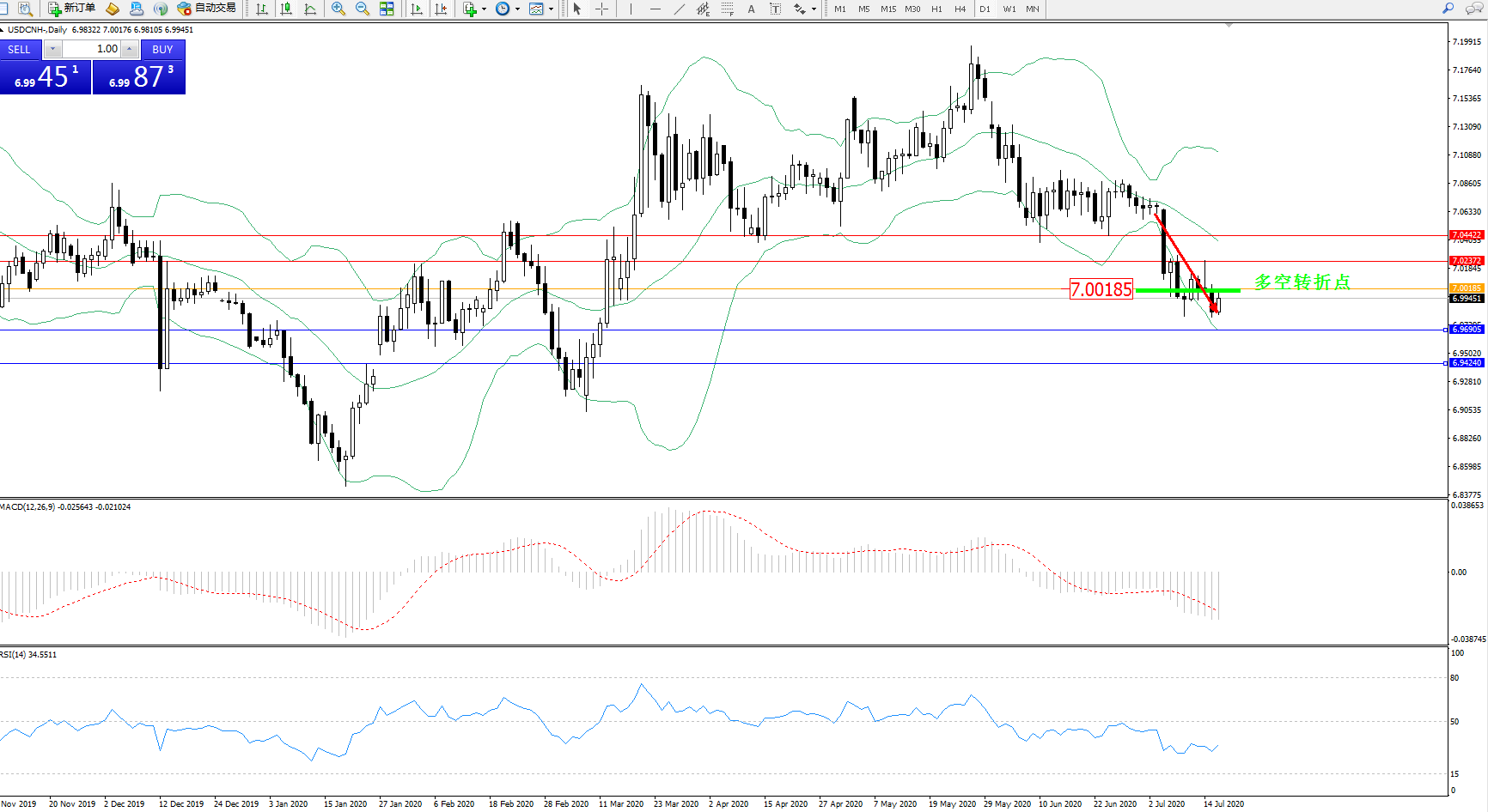交易策略:7.00185下方看跌,目标6.969056.94240