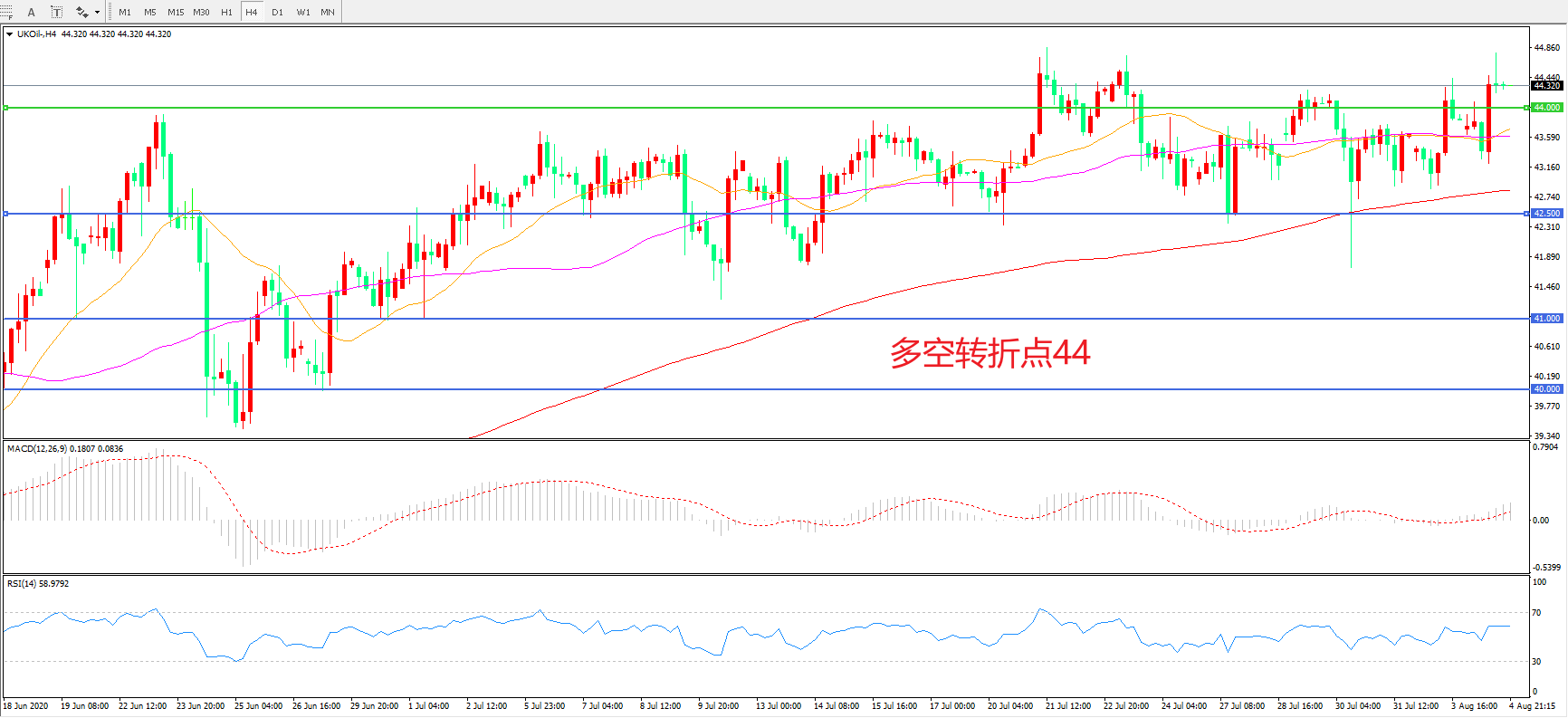 交易策略:  在44.00之上看涨,目标46.00      49.00
