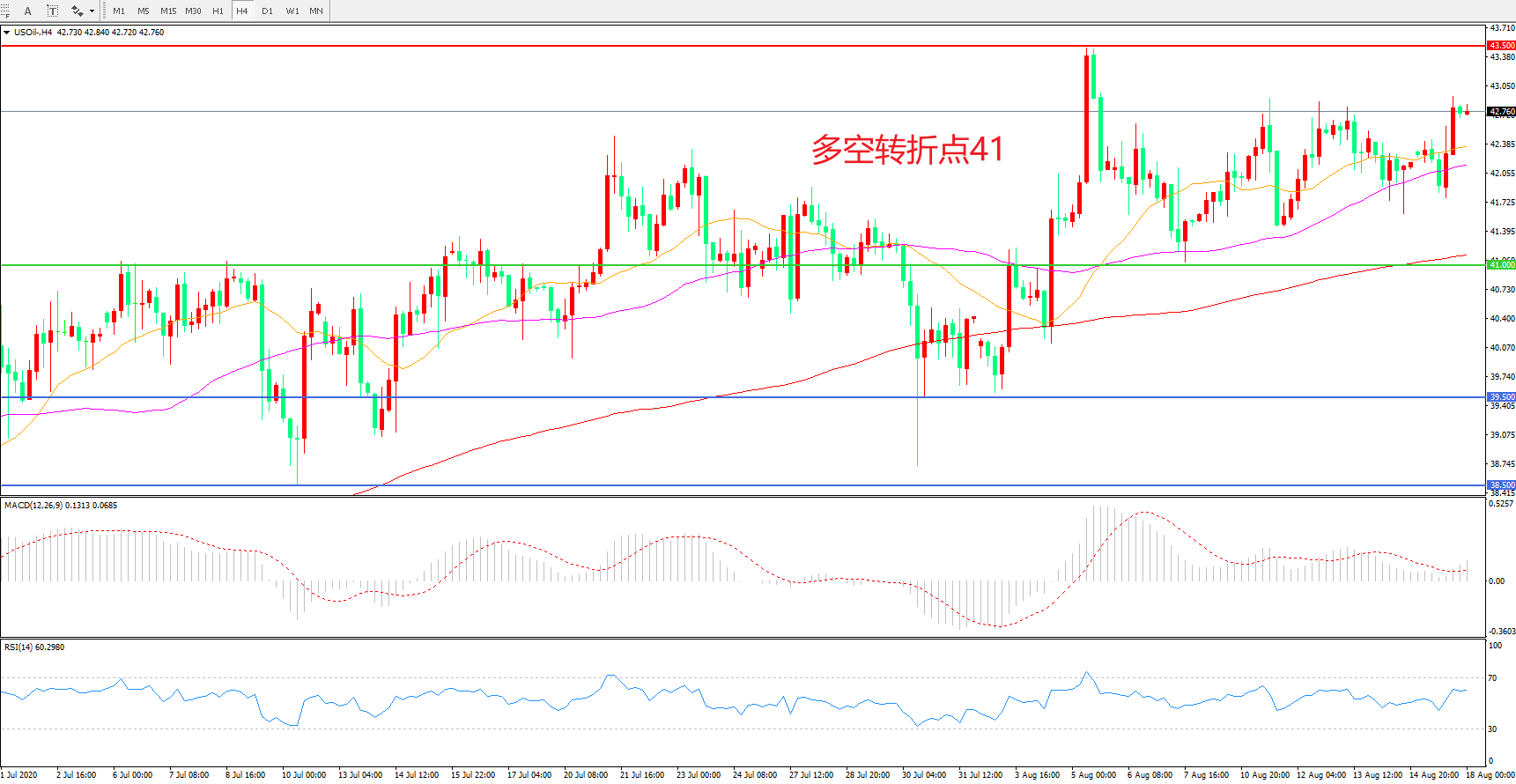 交易策略:在41.00之上看涨,目标43.50 46.00