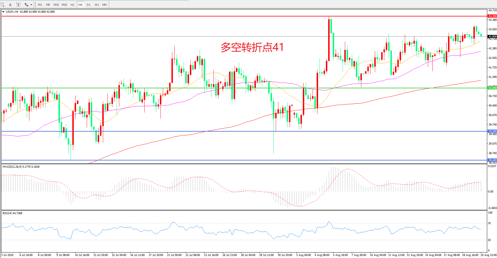 交易策略:在41.00之上看涨,目标43.50         46.00