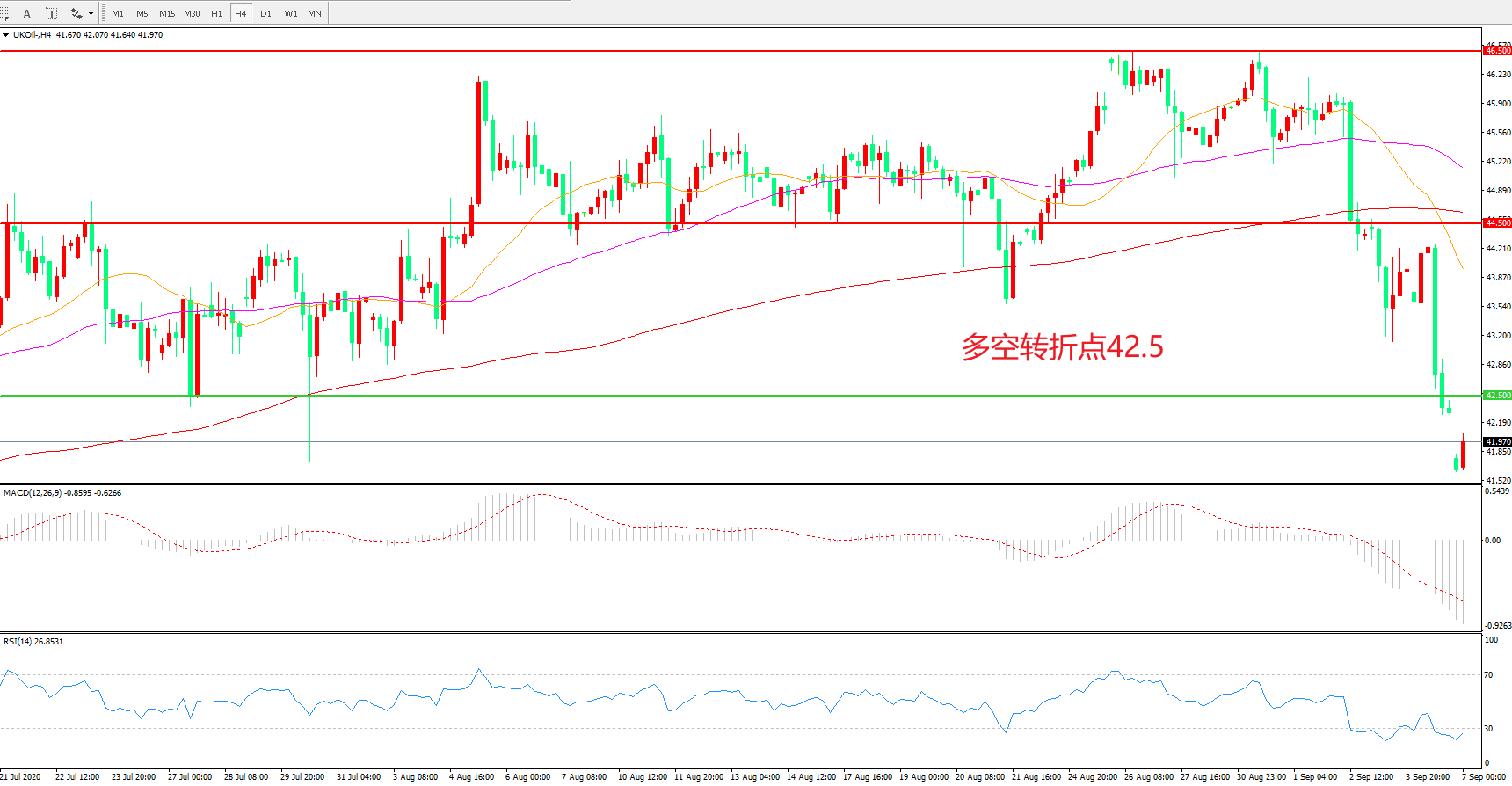 交易策略: 在42.50之下看跌,目标40.00 37.00