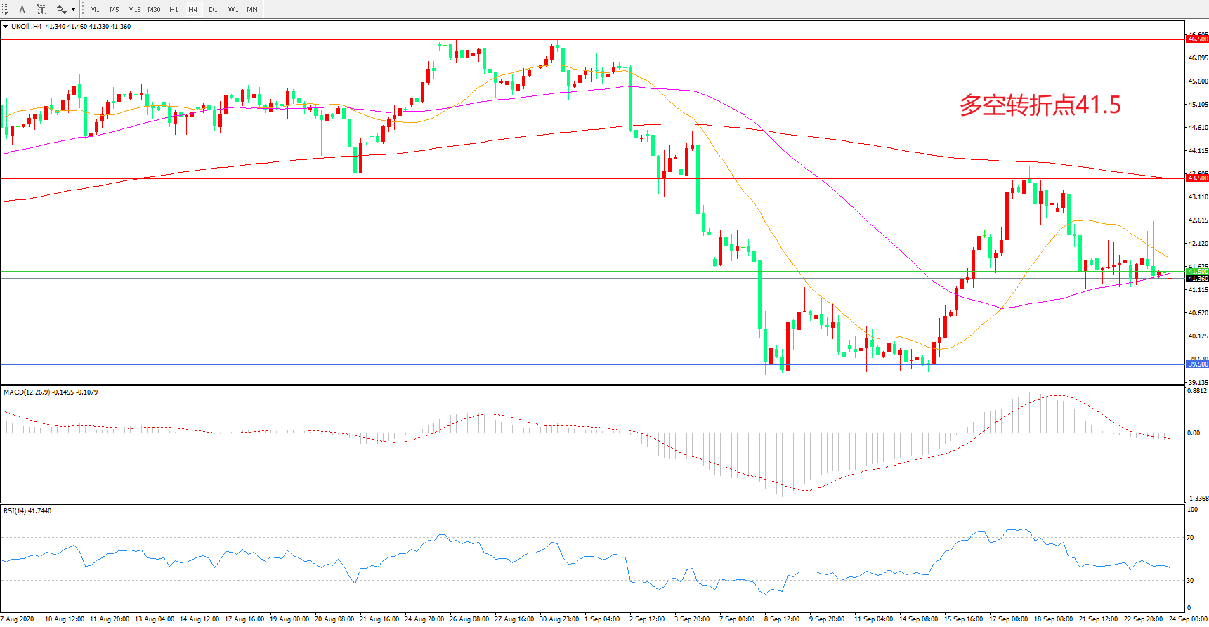 周三(9月23日),美国当周EIA原油库存减少163.90万桶,好于API数据表现,布伦特原油多头出现了上攻的欲望,但无奈动能不足,随后价格又震荡走低,收报41.40美元/桶。当前的疫情是影响全球宏观市场和原油价格的最主要因素,只有疫苗能够普及,原油价格才会出现向上突破的行情。