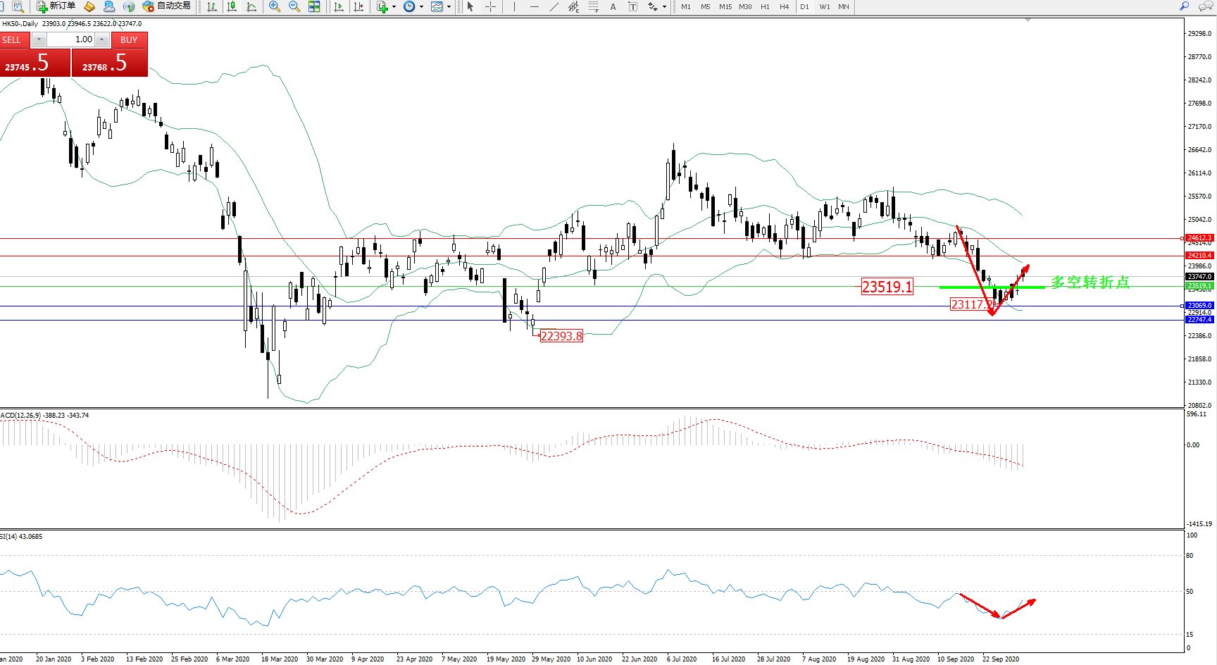 香港恒生指数10月5日(周一)收盘上涨308.73点,涨幅1.32%,报23767.78点;港股恒指高位震荡,恒生科技指数开盘回落,全日呈低位徘徊态势。保险股、香港本地股领涨大市,中国人寿涨4.73%为最佳恒指成份股,大型科技股强势,腾讯、阿里升超2%,小米、美团、京东均涨超1%;延续近期强势,港股市场光伏和风电股今日再度集体大涨。光伏玻璃价格上涨超预期,福莱特玻璃尾盘涨幅扩大至17.5%续创历史新高;半导体走低明显,中芯国际收跌4.6%,盘中曾一度大跌近8%;濠赌股、汽车股、钢铁股全日低迷。大市成交额持续萎靡,不足千亿港元。据港交所文件:将于2020年10月19日推出优化开市前时段。优化后开市前时段将不再涵盖所有的证券,而只会涵盖所有股本证券(包括预托证券、投资公司、优先股及合订证券)、基金(包括交易所买卖基金及房地产投资信托基金)及杠杆及反向产品。