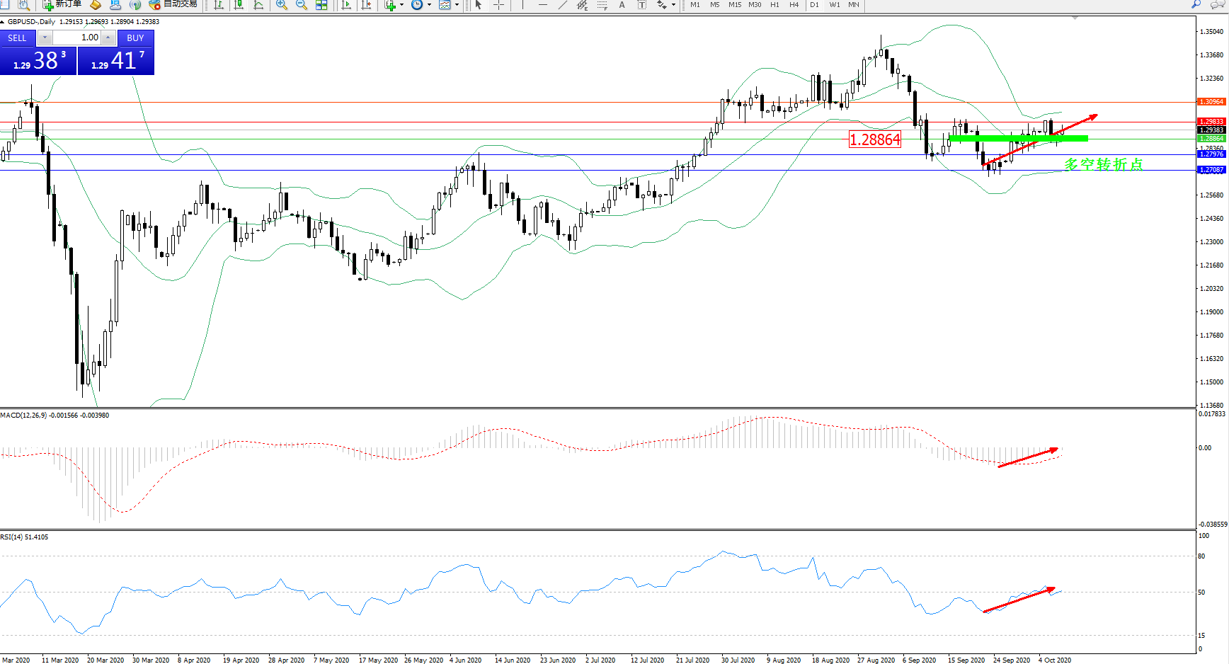 交易策略:1.28864下方看跌,目标1.30964、1.31812