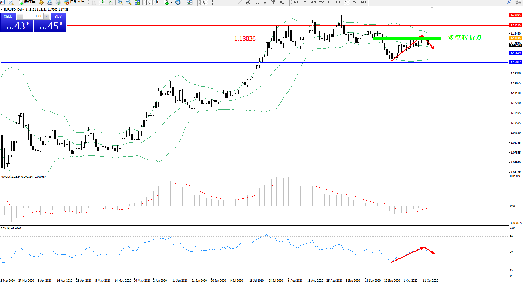 交易策略:1.18036下方看跌,目标1.16699、1.15897