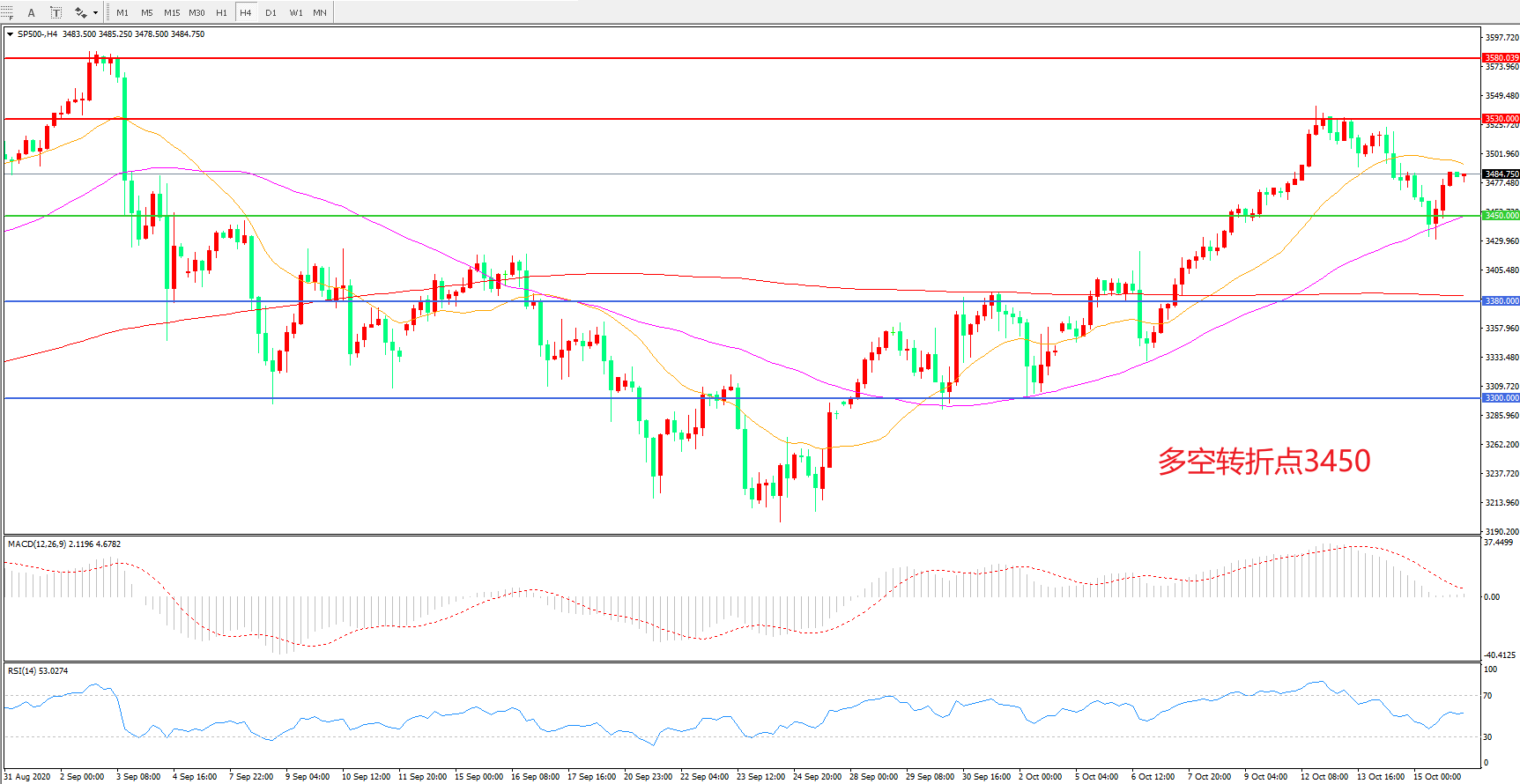 多空转折点:3450.00