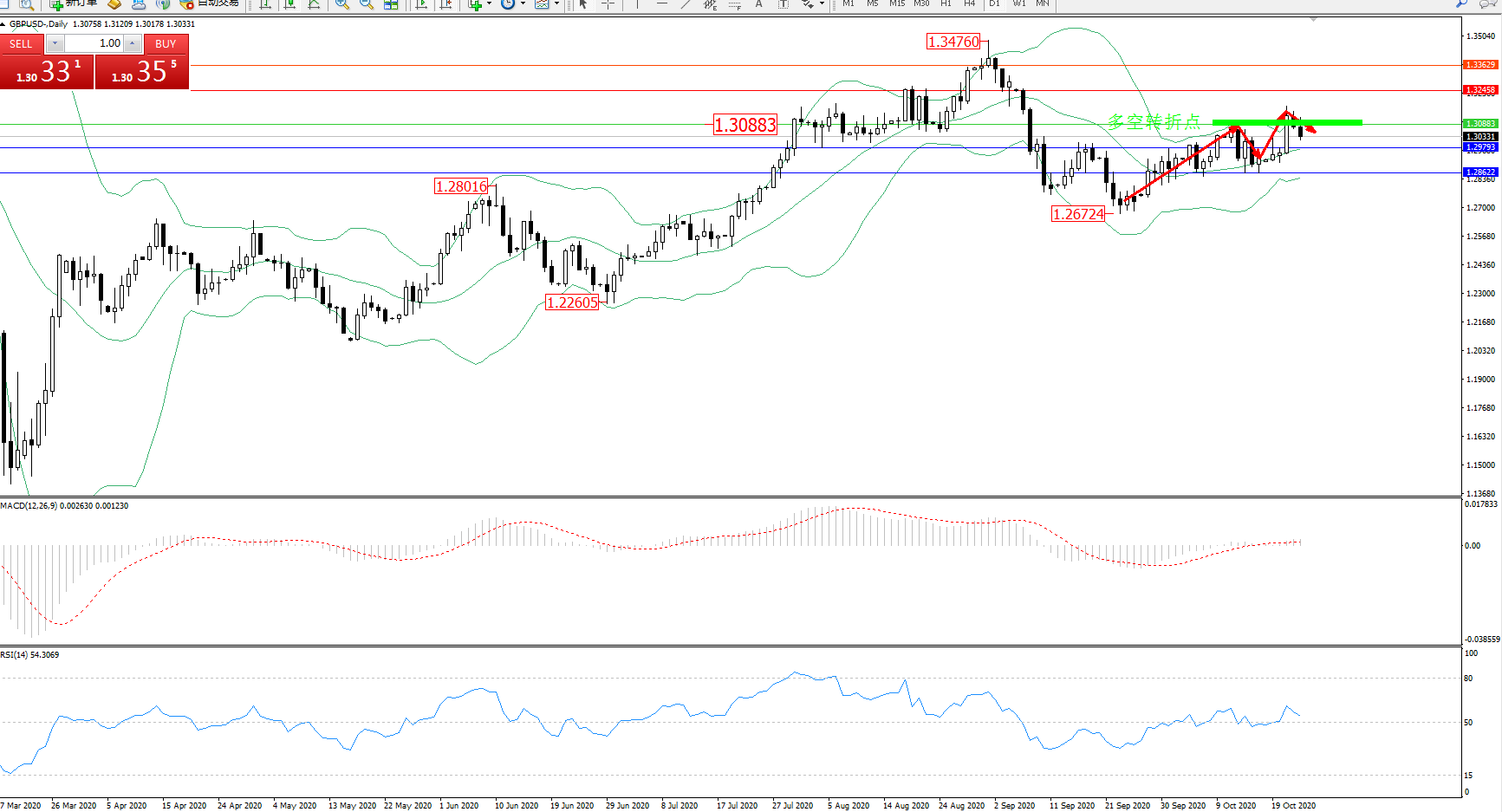 备选策略:1.30883上方看涨,目标1.32458、1.33629