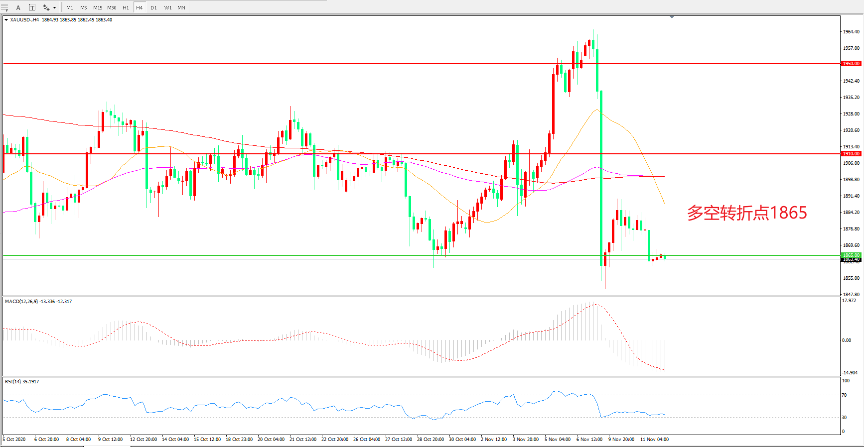 多空转折点:1865.00