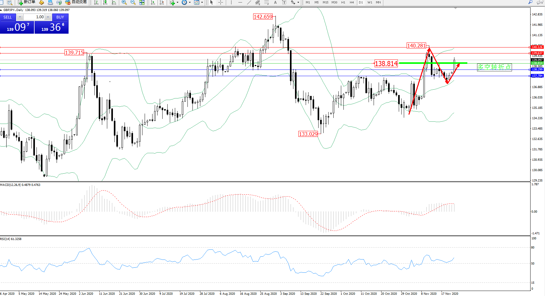 英镑兑日圆强势拉升至139.097附近,英国脱欧官员准备以极快的速度通过未来关系法案。在脱欧谈判开始“最后冲刺”之际,英国首相约翰逊准备对其进行重大干预,约翰逊预计将与欧盟委员会主席冯德莱恩进行通话,试图清除脱欧协议的最后障碍。英国经济可能已经挽回了大约三分之二的疫情损失。虽然上周欧盟峰会上各方坦言英欧谈判仍有更多障碍需要迈过,但是投资者仍对本周继续进行的谈判充满信心;一旦局势扭转,谈判前景重新恶化,硬脱欧风险卷土重来。