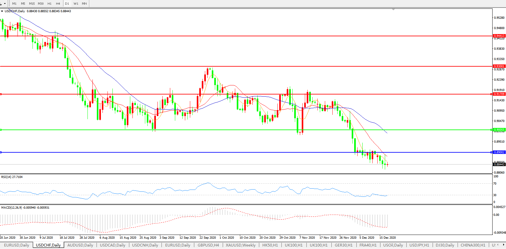 刺激政策提振冒险意愿,美元兑瑞郎弱势下行