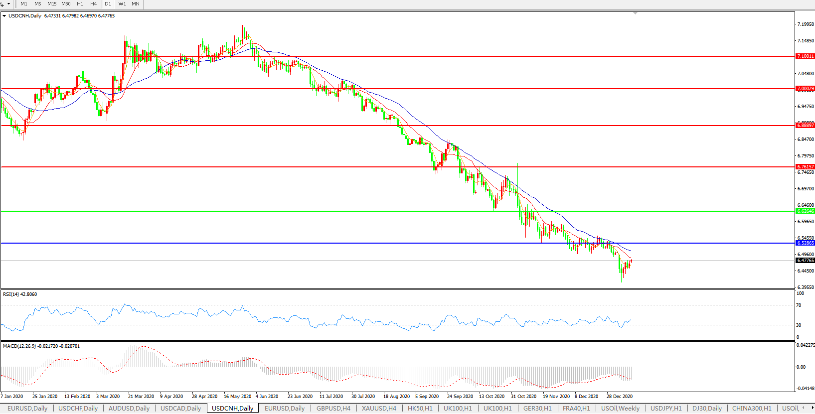 美元兑人民币USDCNH 日线图: