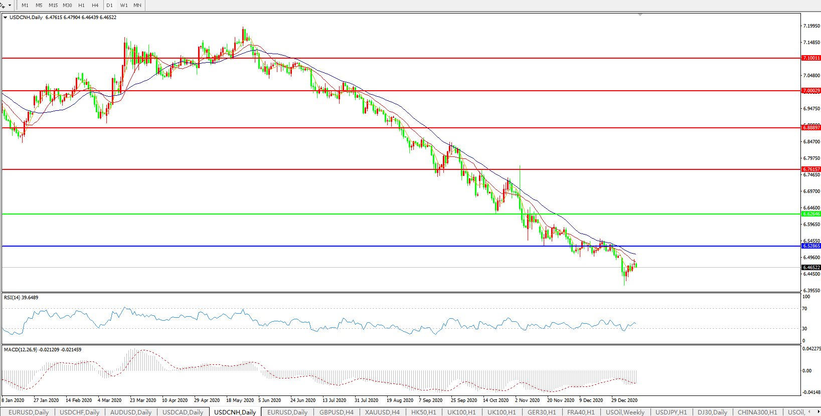 交易策略: 在6.6265之下,看跌,目标价位为6.5286,然后为6.3500。