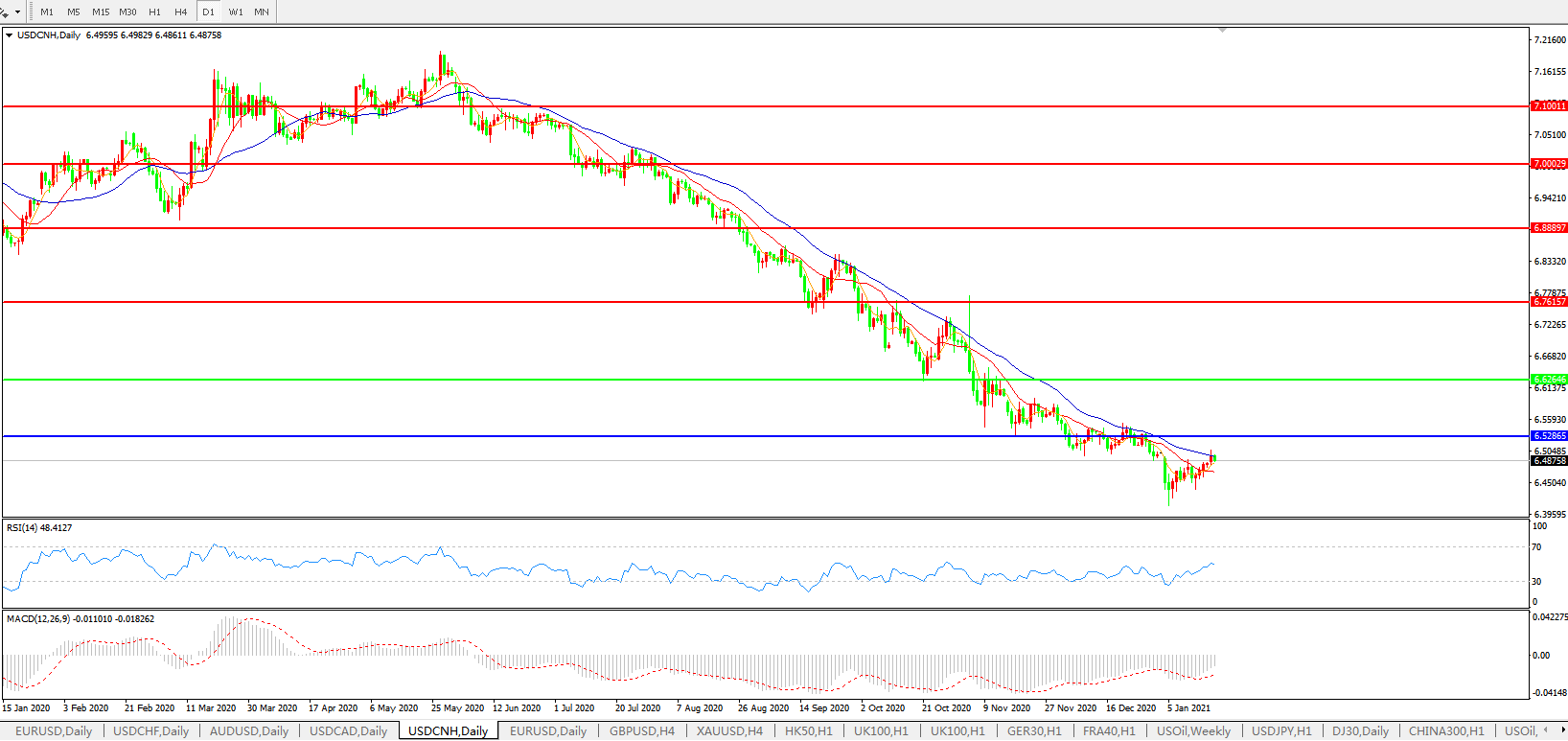 交易策略: 在6.6265之下,看跌,目标价位为6.5286,然后为6.3500。