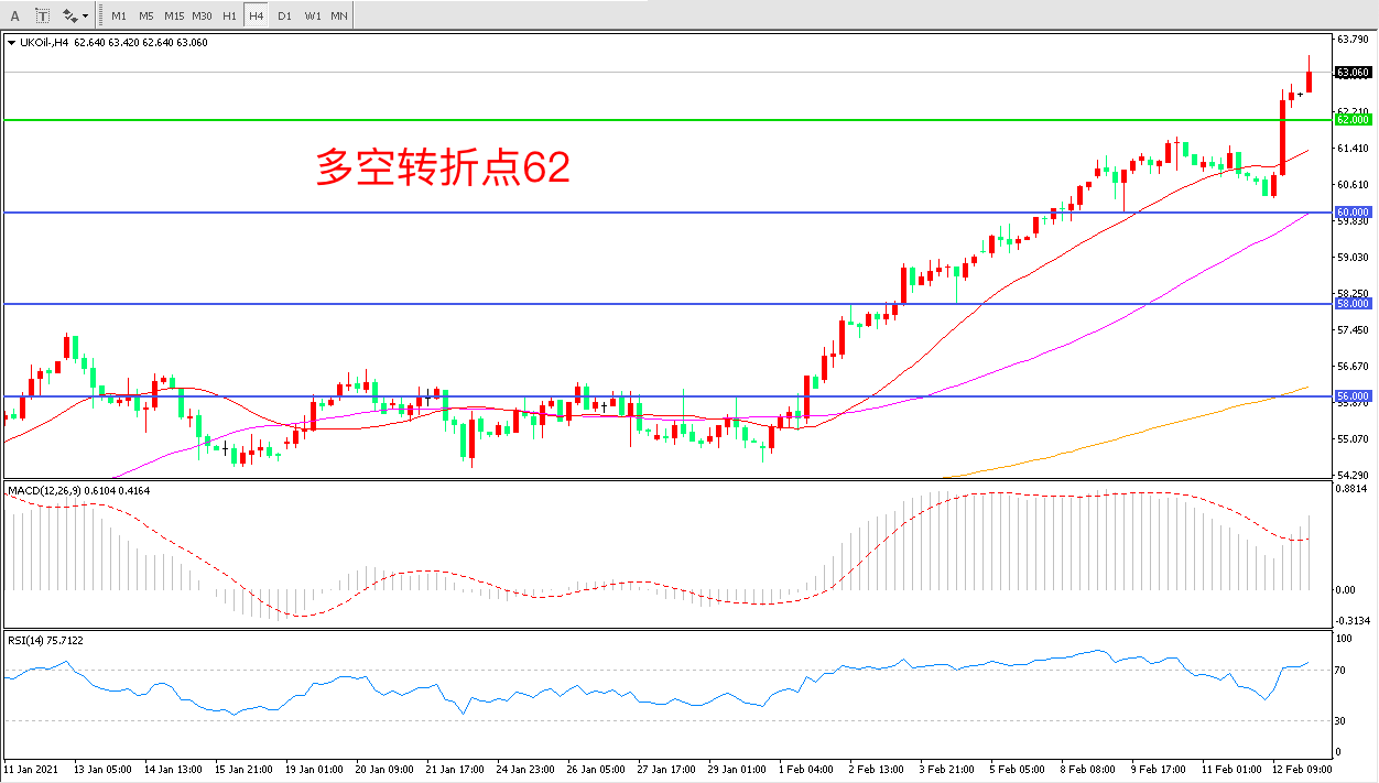 交易策略:  在62.00之上看涨,目标65.00 68.00