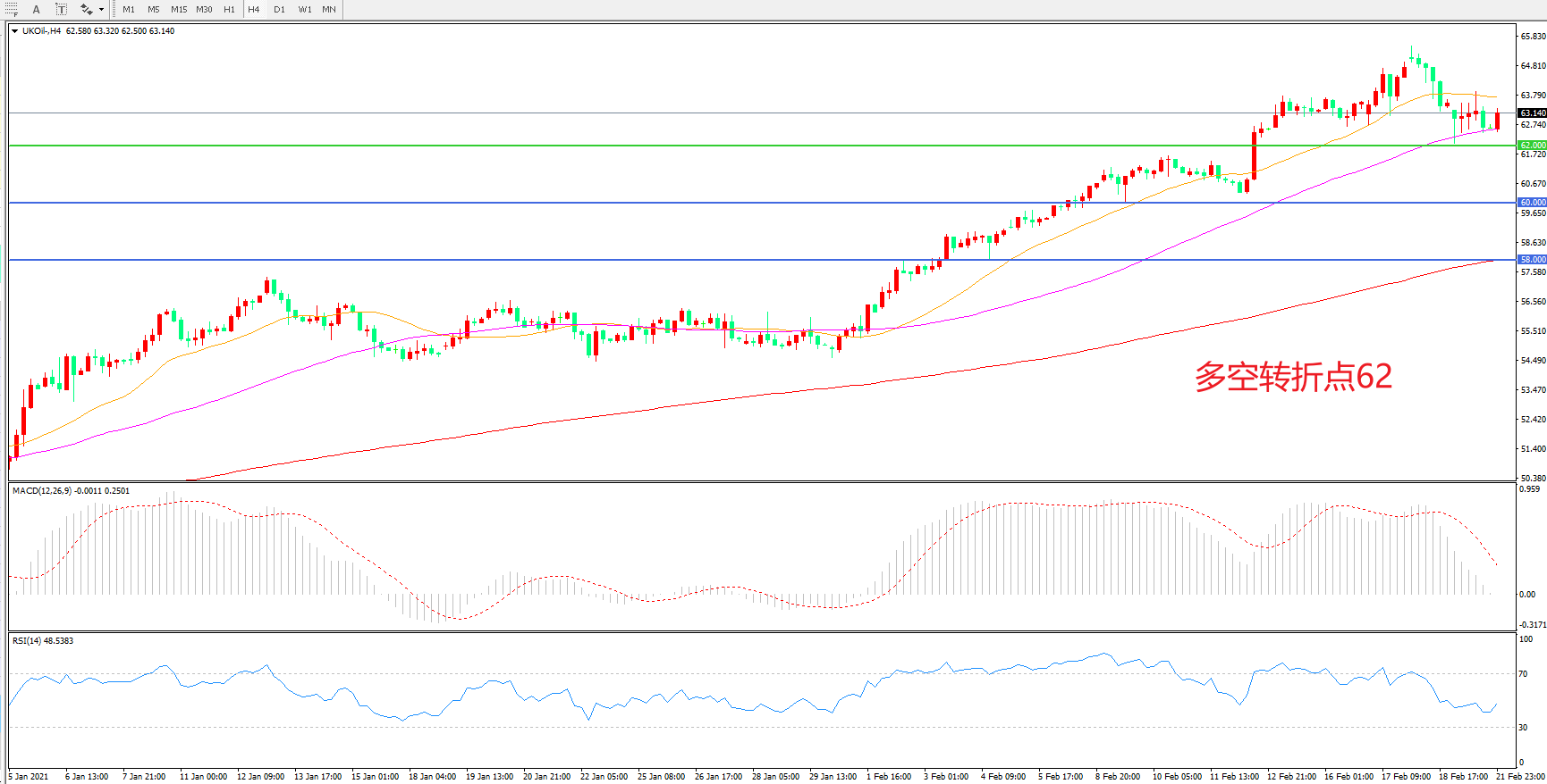 多空转折点:62.00