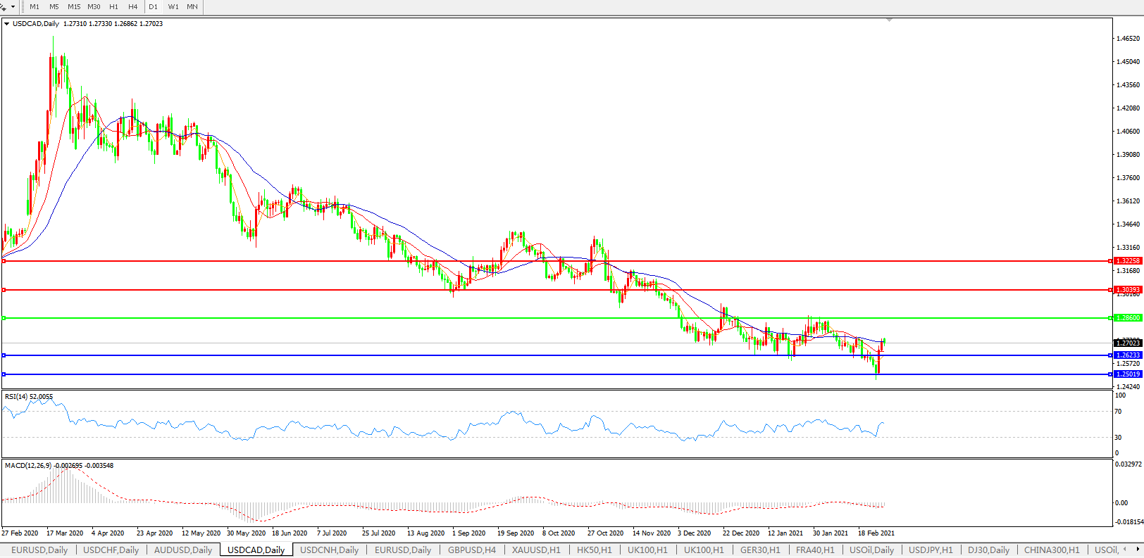 美元兑加元USDCAD 日线图: