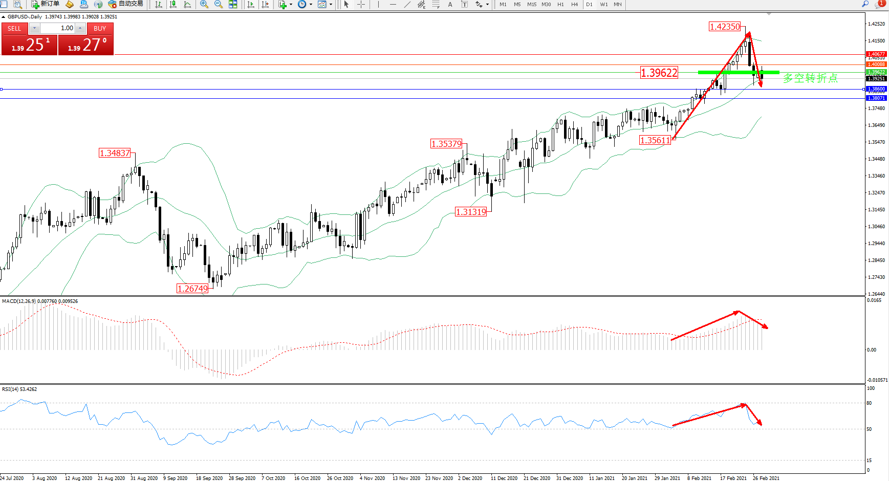 交易策略:1.39622下方看跌,目标1.38600、1.38071