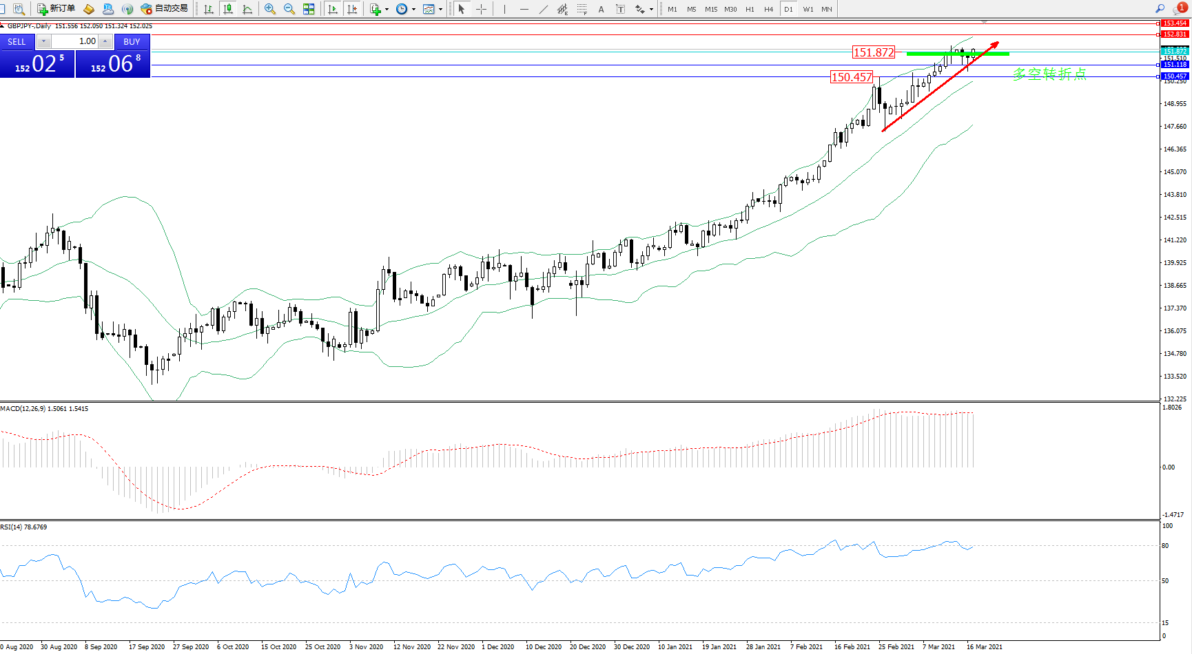 英镑兑日圆高位151.870附近震荡,市场预计英国央行将在周四的3月利率决议上维持货币政策不变,由于新冠疫情大流行仍对企业和家庭造成损害,且前景高度不确定,英国央行将认识到这些风险,因此可能会保持非常宽松的货币政策立场,直到复苏基础更加稳固,在这个关键时刻,不排除加快债券购买步伐,或改变定期融资计划的可能性,至于负利率,预计目前不会进一步降息。英国迅速接种疫苗将会导致其经济更快重启,同时也将更快摆脱300年来最严重的年度产出萎缩,英央行行长安德鲁·贝利表示,英央行承诺加速购债,表明对经济复苏持谨慎态度;周四英央行货币政策会议之前,英央行行长贝利的话值得关注。