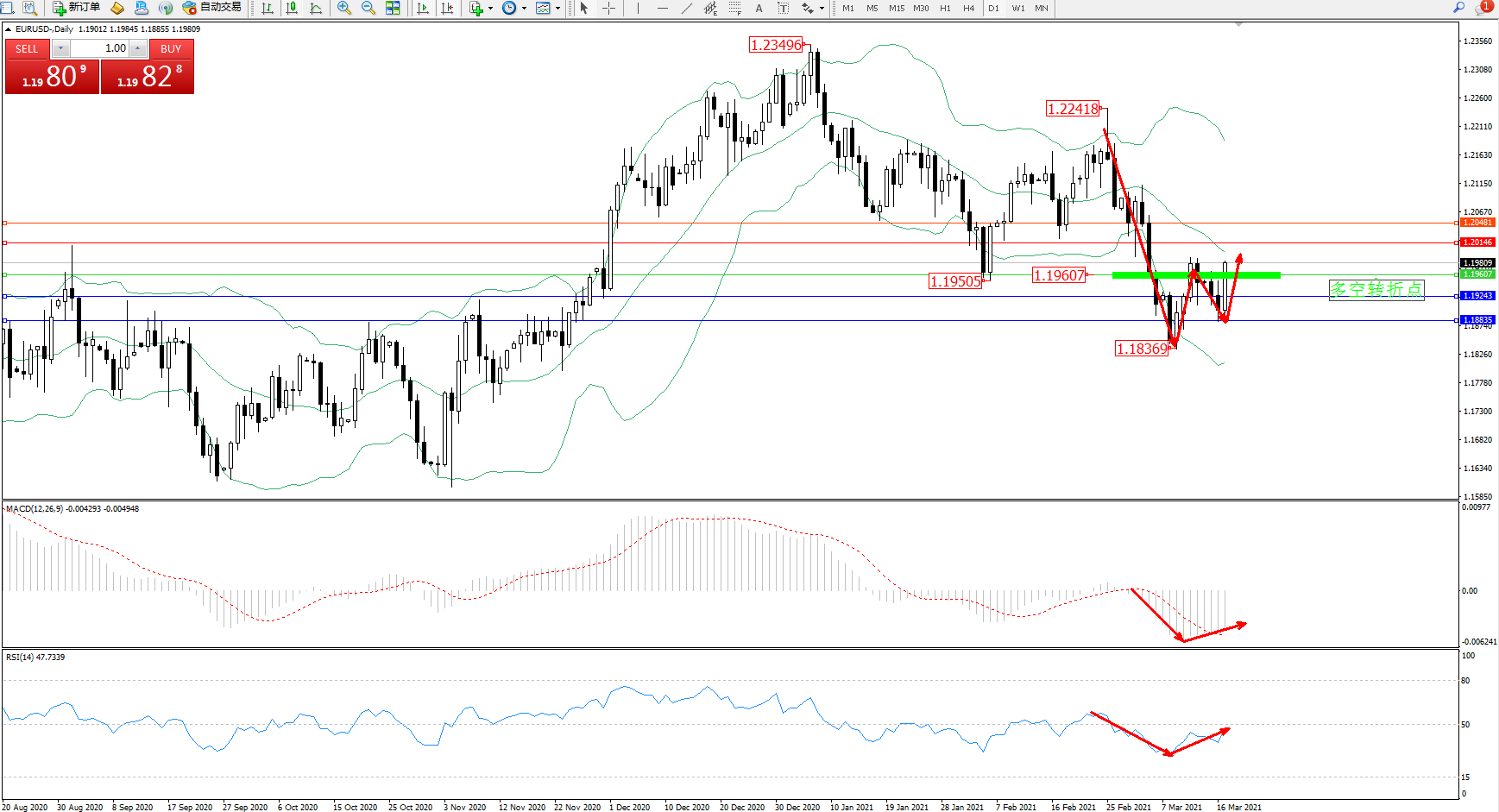 备选策略:1.19607下方看跌,目标1.19243、1.18835