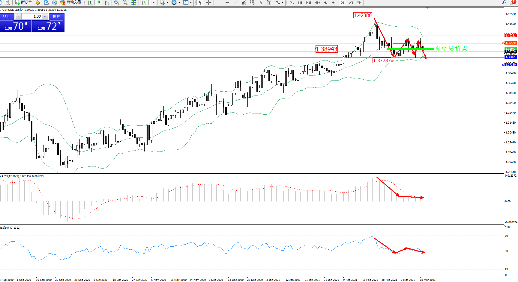 交易策略:1.38943下方看跌,目标1.38091、1.37330