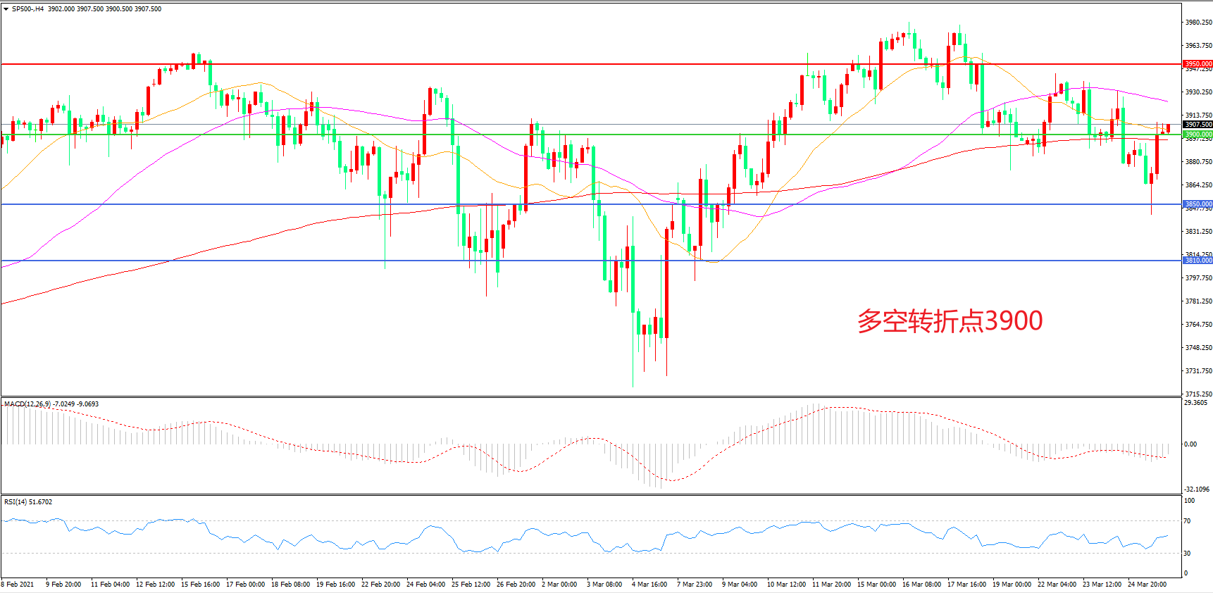 周四(3月25日),虽然美国上周首次申请失业救济人数超预期下降,创一年新低,但美联储主席鲍威尔在讲话中突然表示将逐步减少所购买的美国国债和抵押贷款支持证券的数量。此话一出,美股快速跳水,好在拜登任总统后首个新闻发布会宣布中将重点放在基建,并将百日履新疫苗接种目标翻倍,标普500上演V型反转,收报3903.17点。