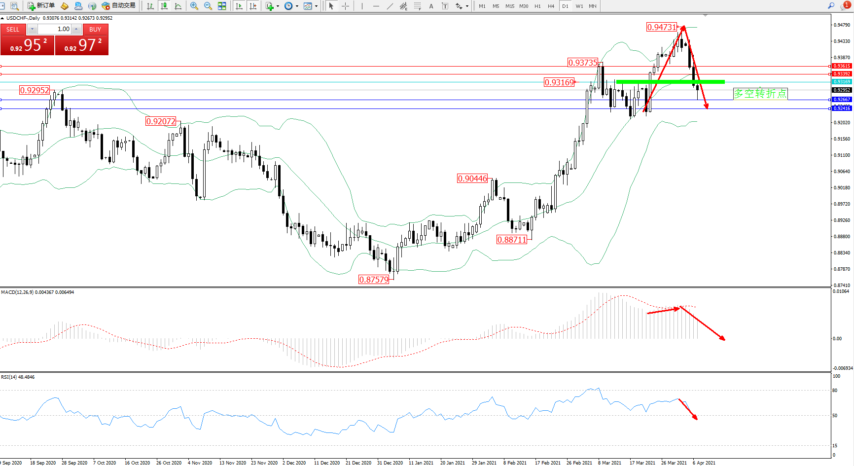 美元瑞郎USDCHF——日K线图显示:
