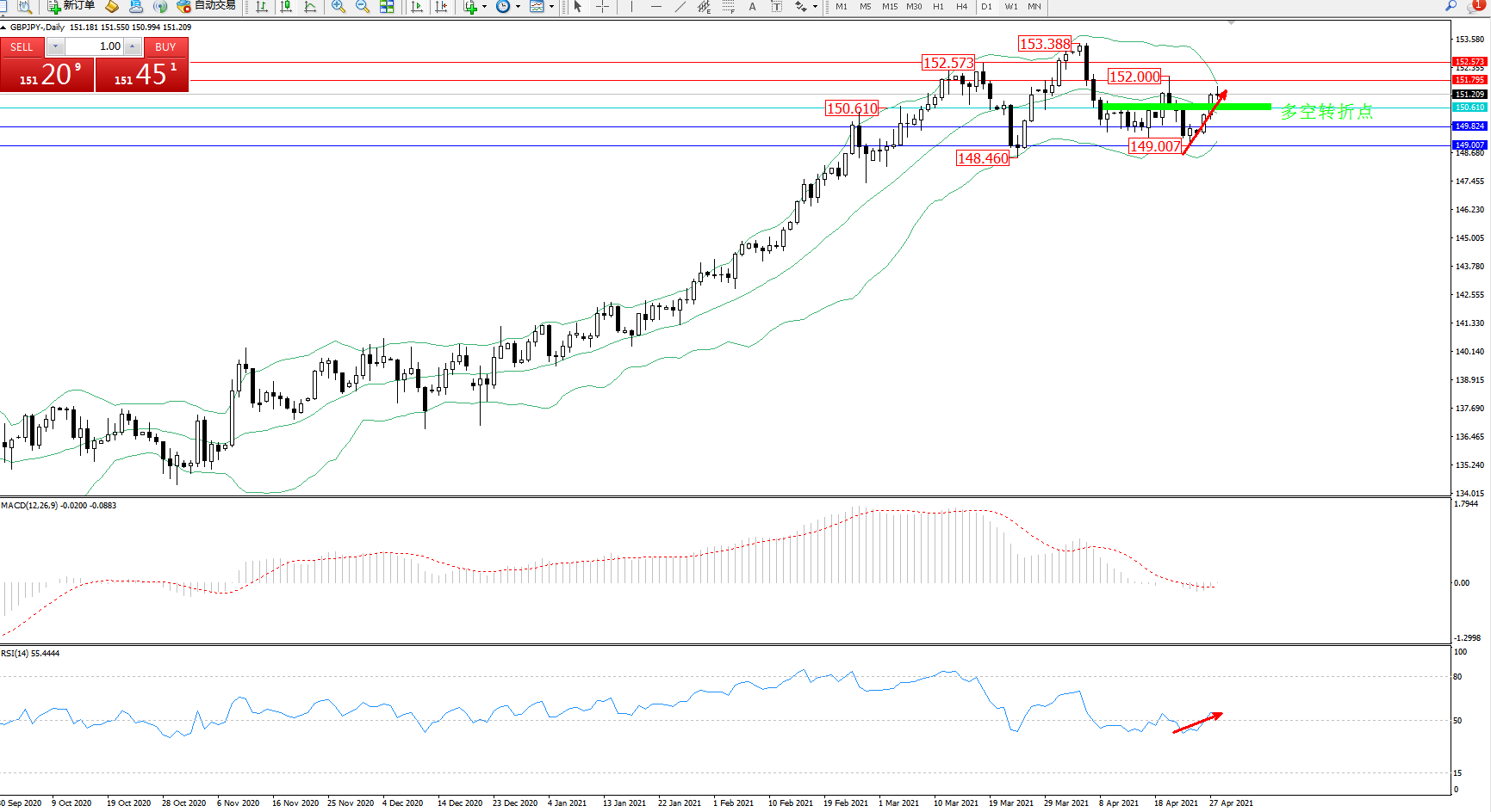 多空转折点:150.610