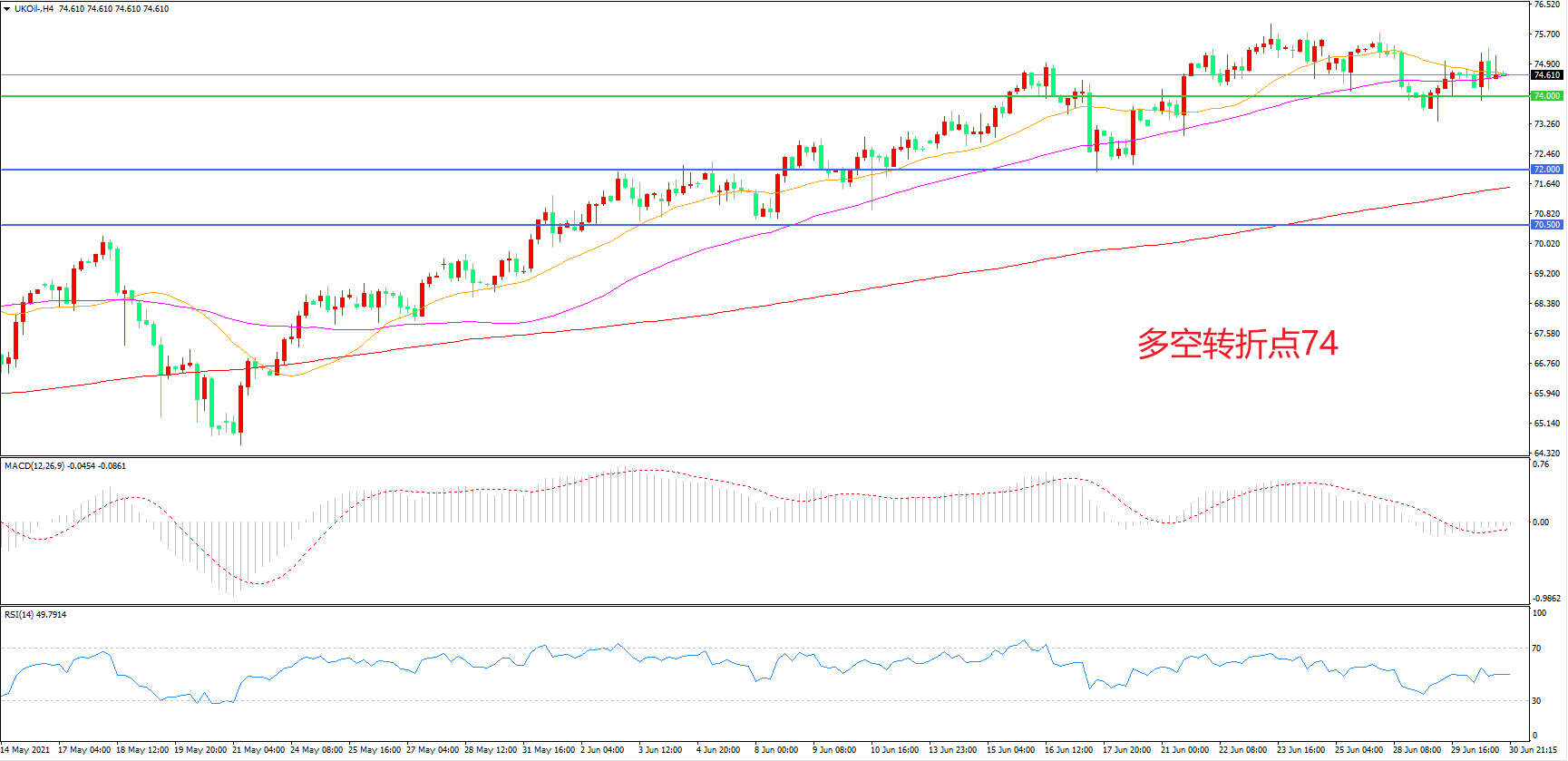 多空转折点:74.00