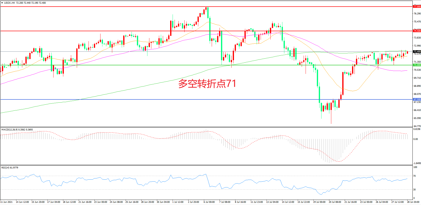 交易策略:在71.00之上看涨,目标74.50       77.00