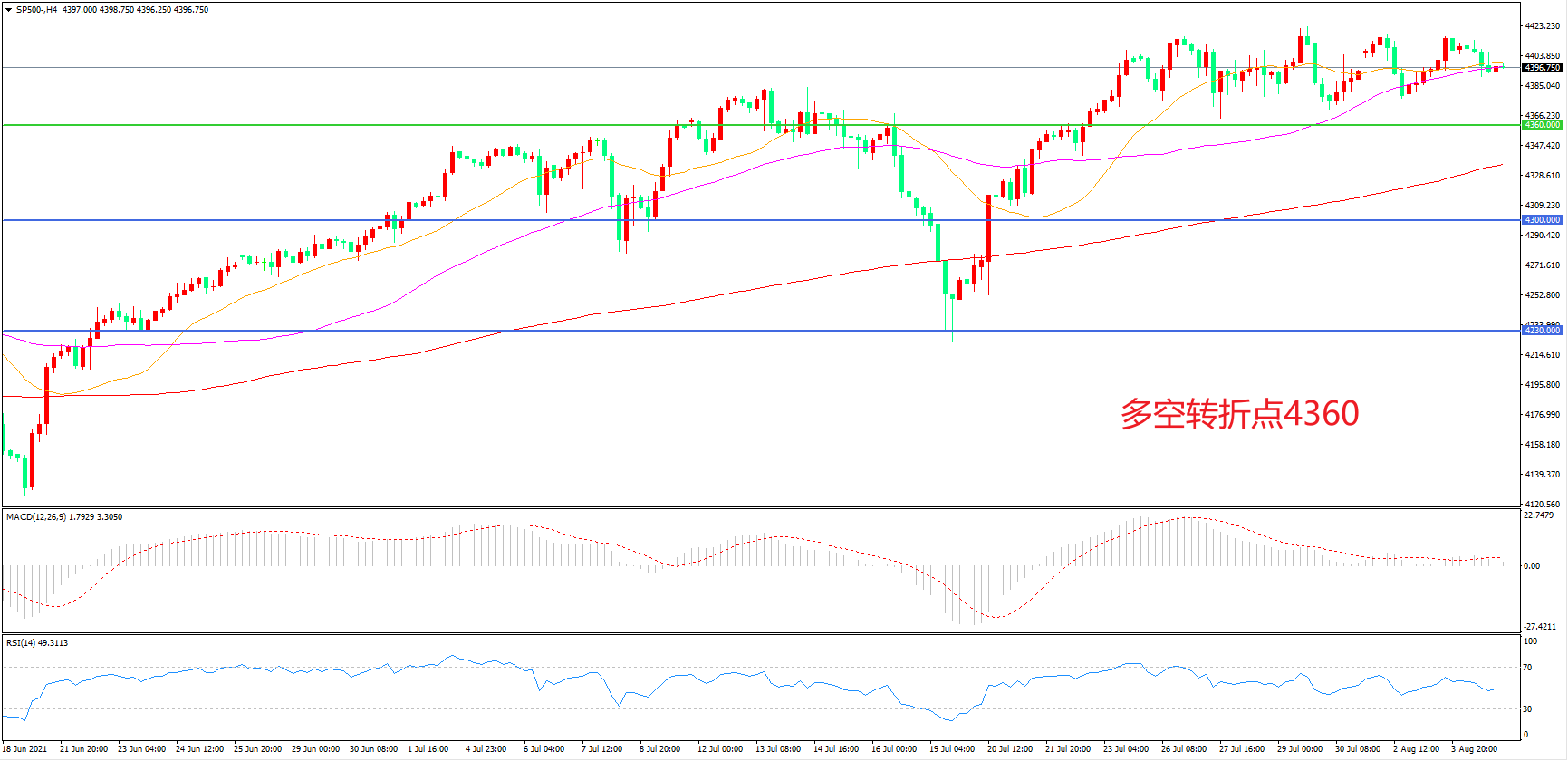 周三(8月4日),素有“小非农”之称的美国7月ADP就业数据公布,录得增加33万人,创下2月以来新低,投资者对劳动力市场的担忧重启,标普500小幅回落,收报4398点。此外,美联储“二把手”理查德·克拉里达预测撤除货币宽松路线时意外流露鹰派倾向,声称今年内可能就开始缩减QE购债,并在2023年开始再次加息。“摇摆不定”的美联储让多头信心受到明显影响。