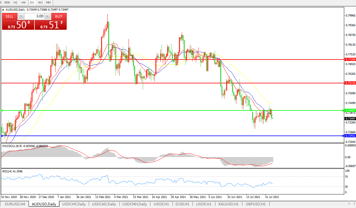 交易策略:0.7400下方看跌,目标0.7240、0.7080