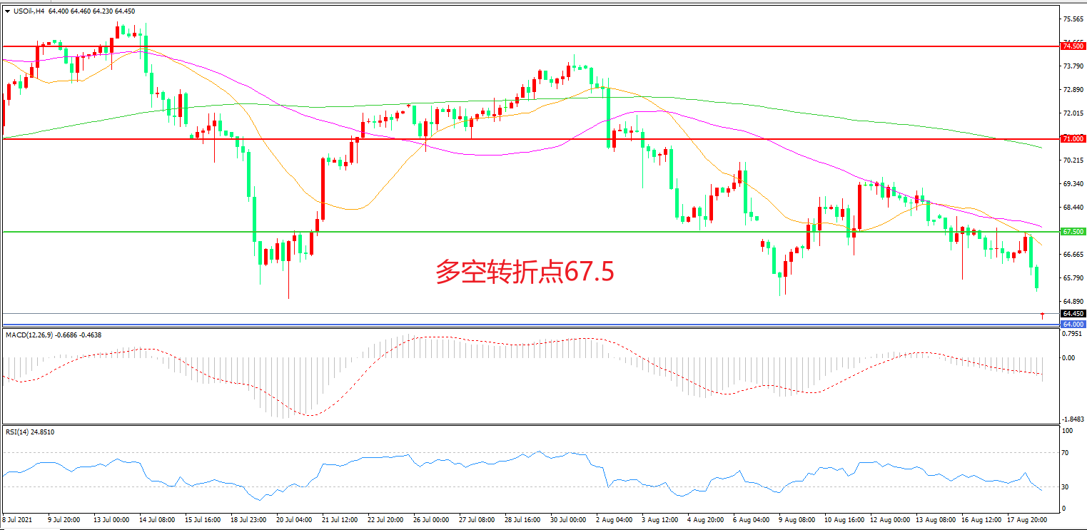 交易策略:在67.50之下看跌,目标64.00 60.00
