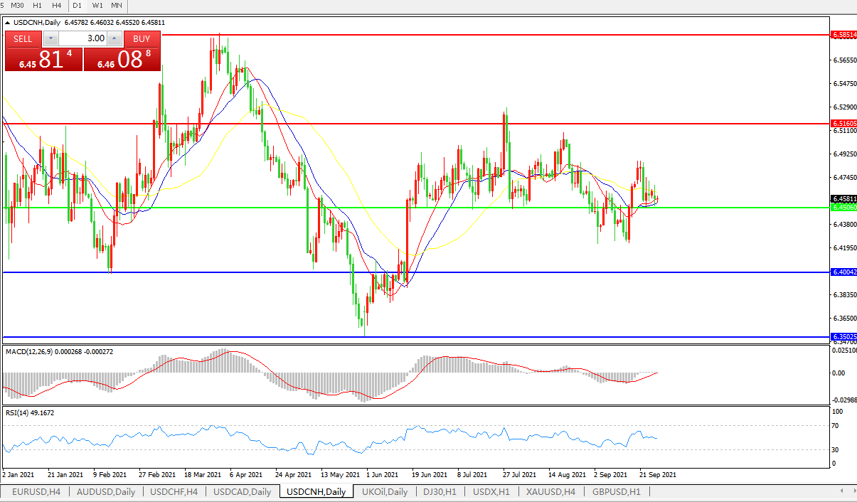 备选策略:在6.4500之下,看跌,目标价位为6.4000,然后为6.3500。