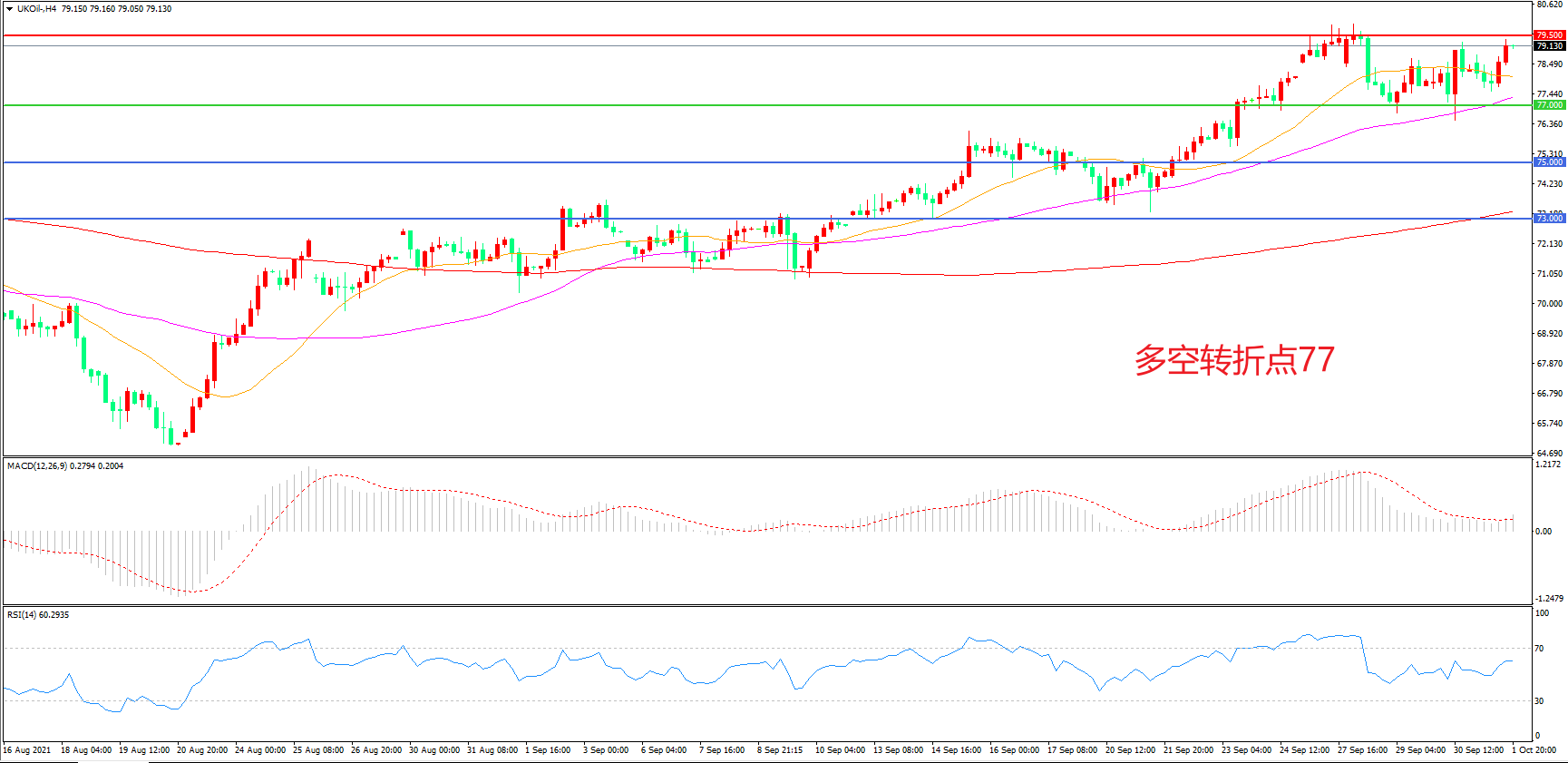 交易策略:在77.00之上看涨,目标79.50 83.00