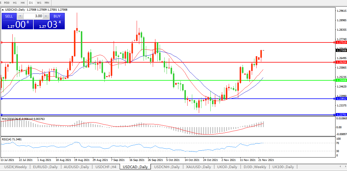 美元兑加元涨0.47%,触及1.2705的七周高位。加拿大丰业银行分析师上周五在一份报告中表示,鉴于未来几天和几周可能宣布更多疫情封锁措施,像加元这样的风险敏感型货币可能会处于守势,而油价下跌则会带来额外的拖累。
