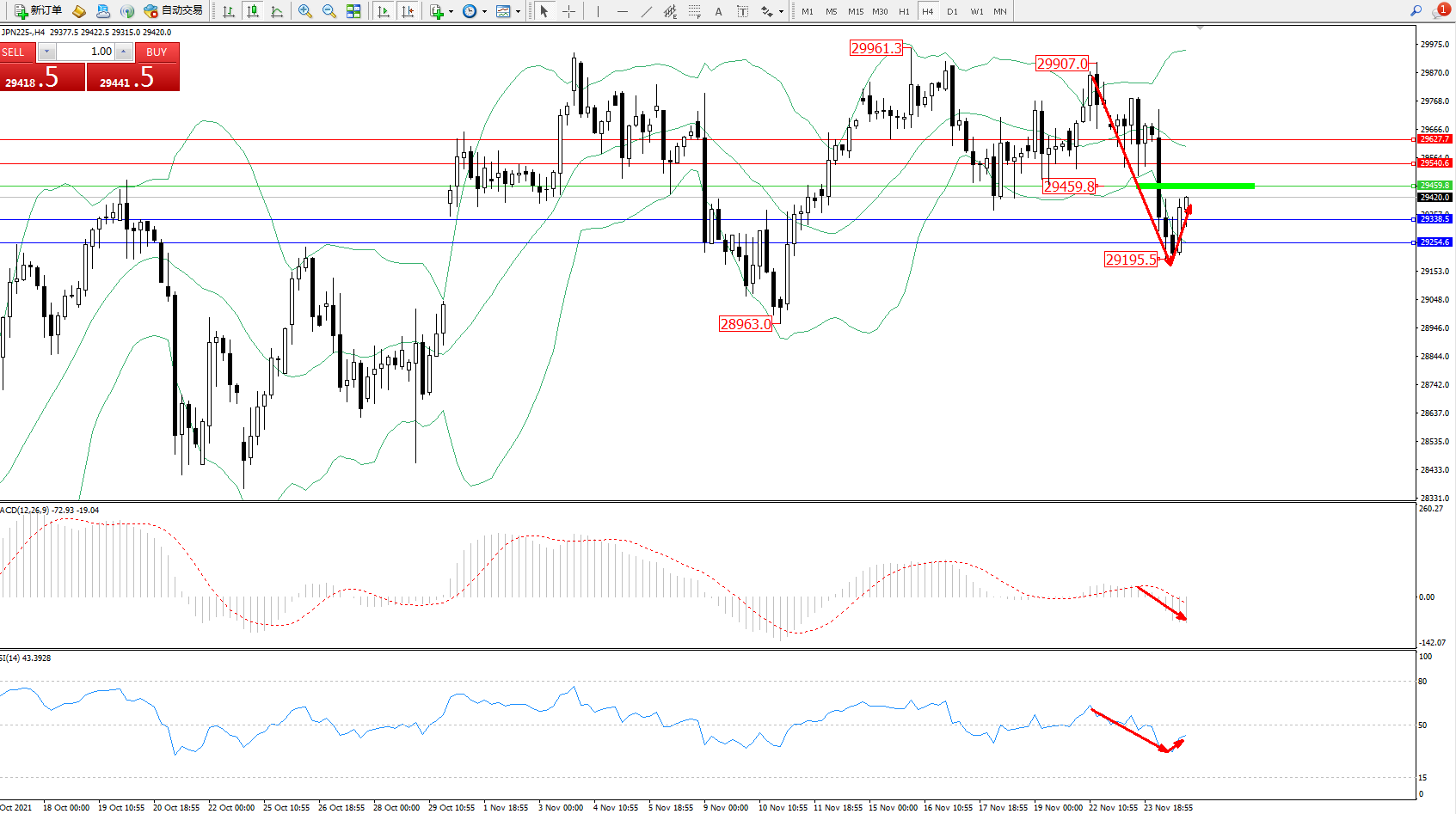 日经225指数11月24日(周三)收盘下跌475.61点,跌幅1.60%,报29298.50点。日本内阁官房长官松野博一:不知道私营部门释放石油的计划。日本经济产业大臣萩生田光一:出售石油储备的时间点待定。政府将会从储备中出售数十万“千升”石油。1千升约为6桶。